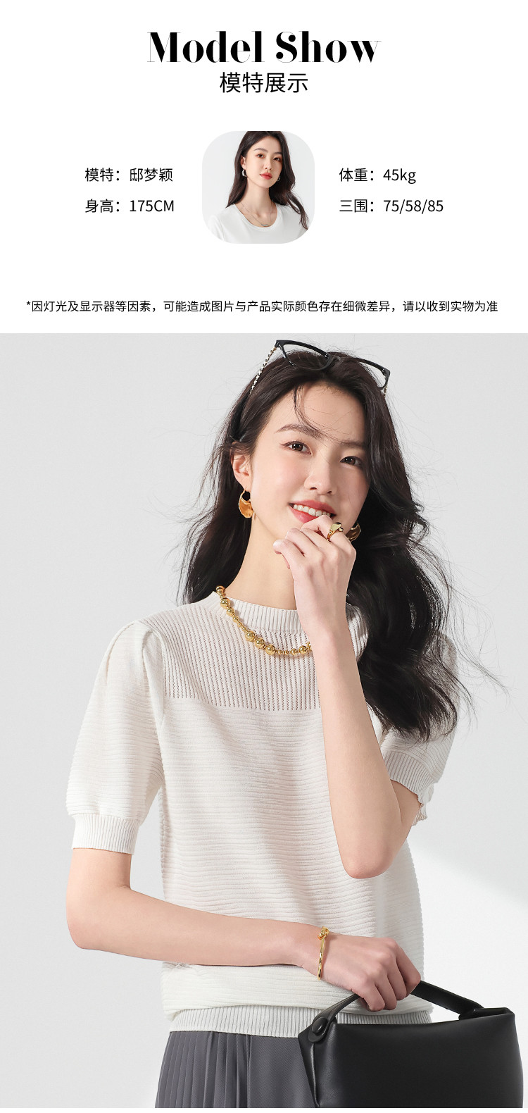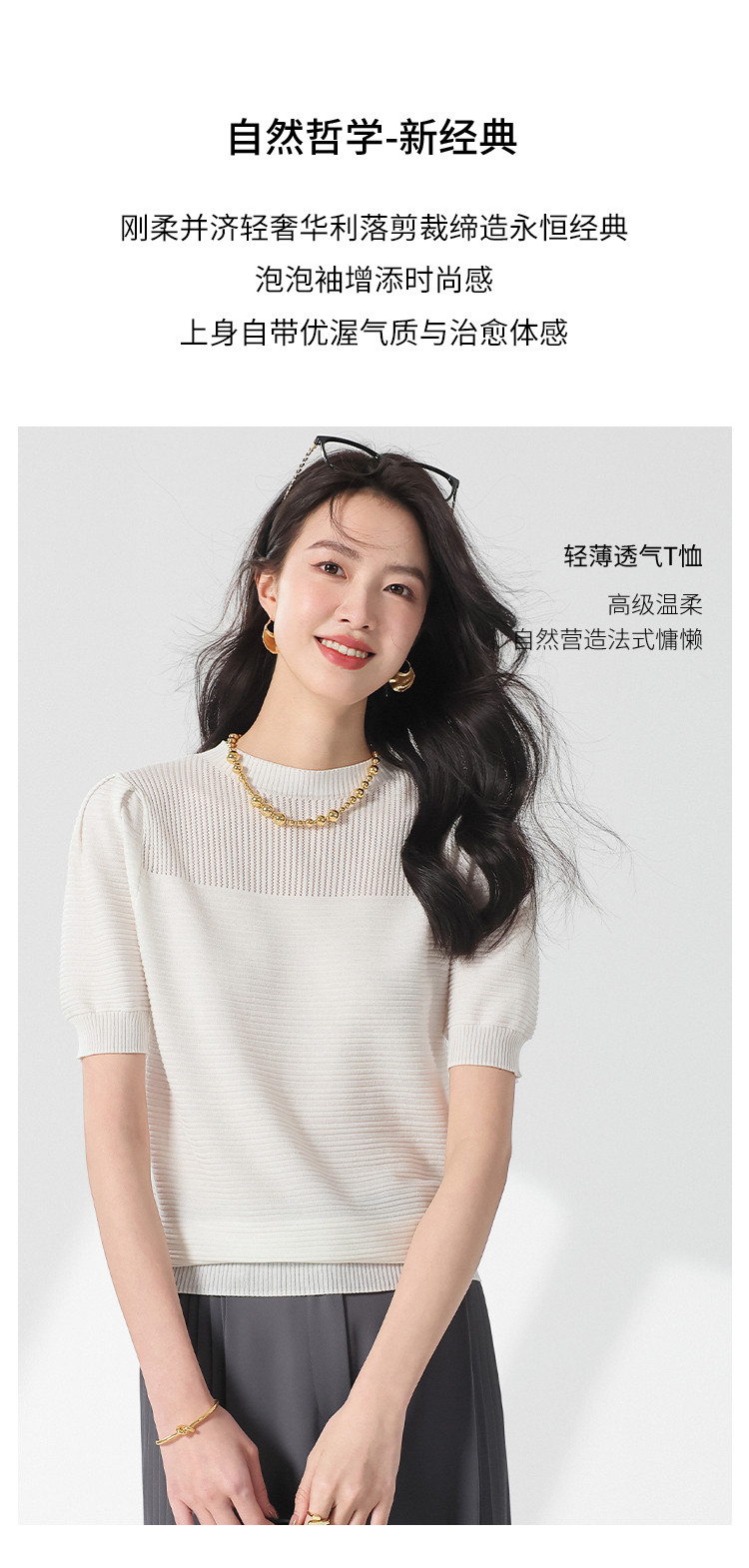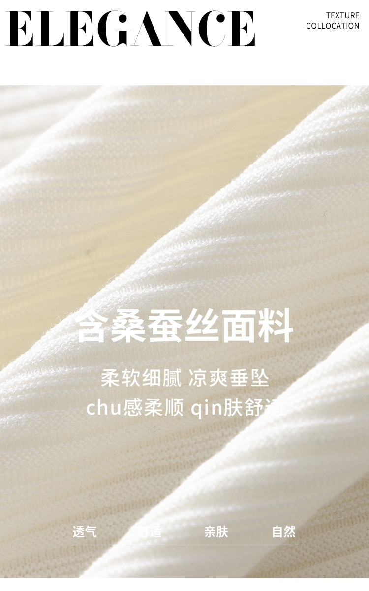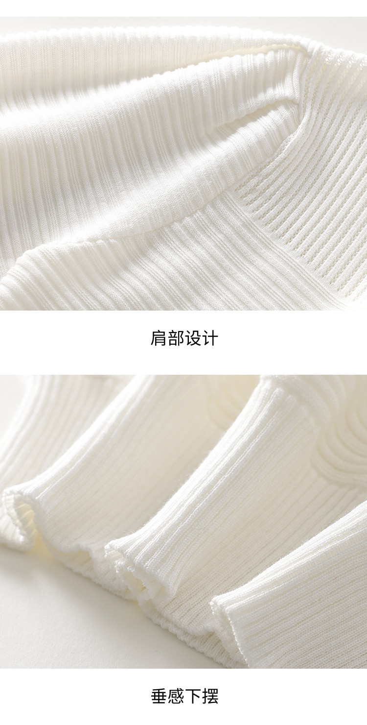 商品名称:【含桑蚕丝】轻薄透气纯色泡泡袖针织衫女夏短袖T恤 222419