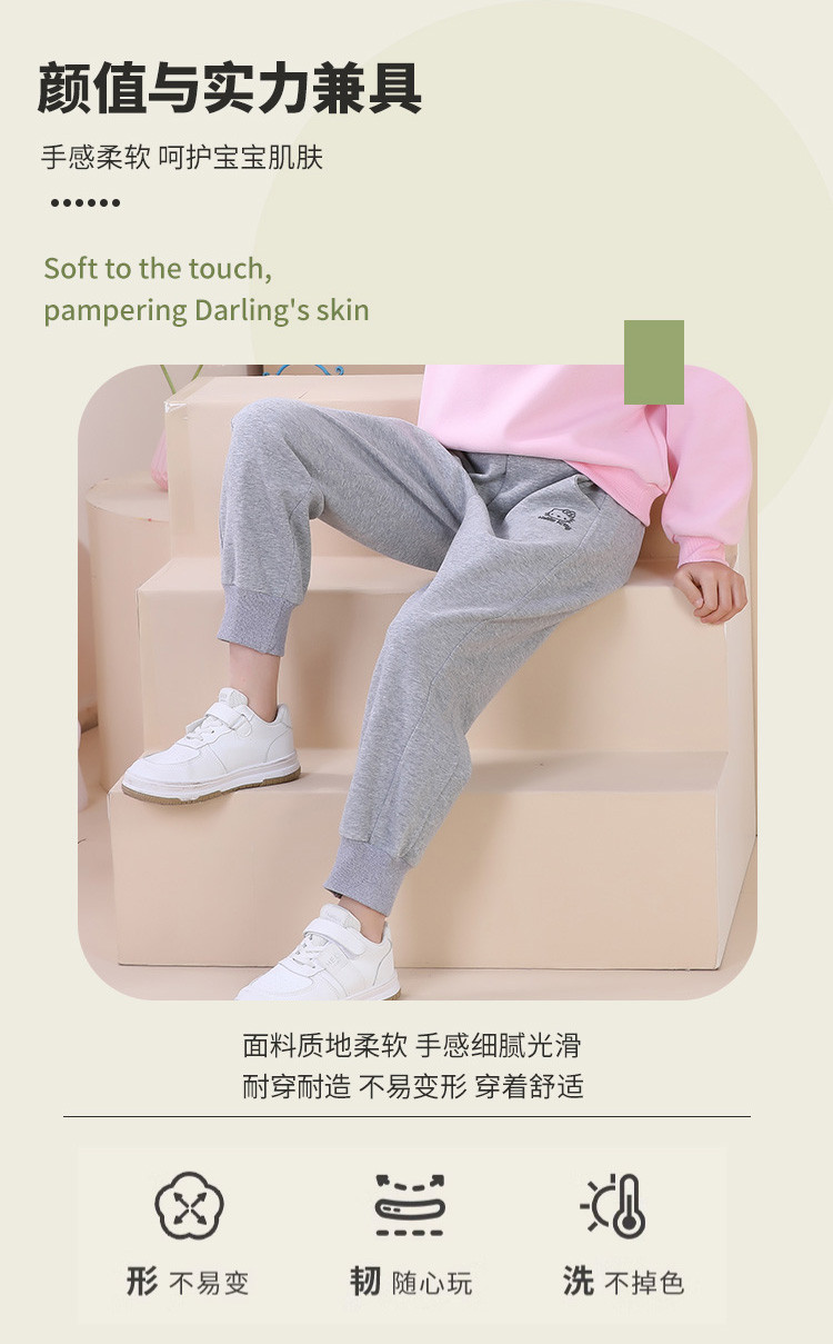 商品名称:儿童卫裤2024春秋季新款女童舒适运动休闲童装女孩耐磨 094081