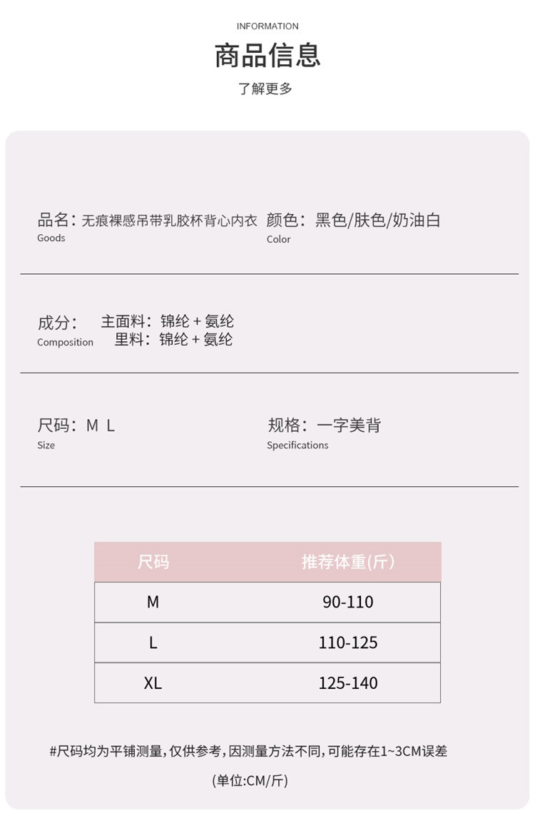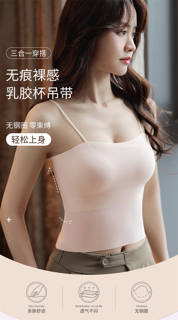 商品名称:【钜惠捡漏 自带胸垫】乳胶垫防螨透气百搭内衣女士吊带打底背心 891486