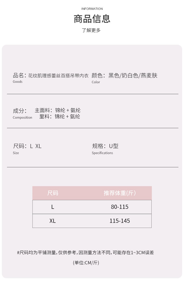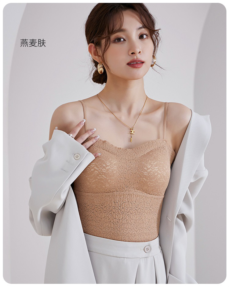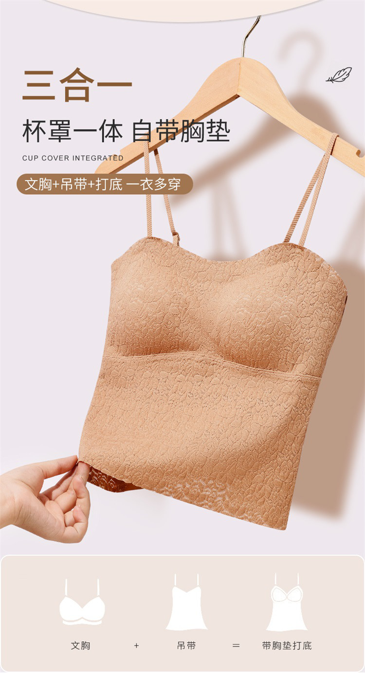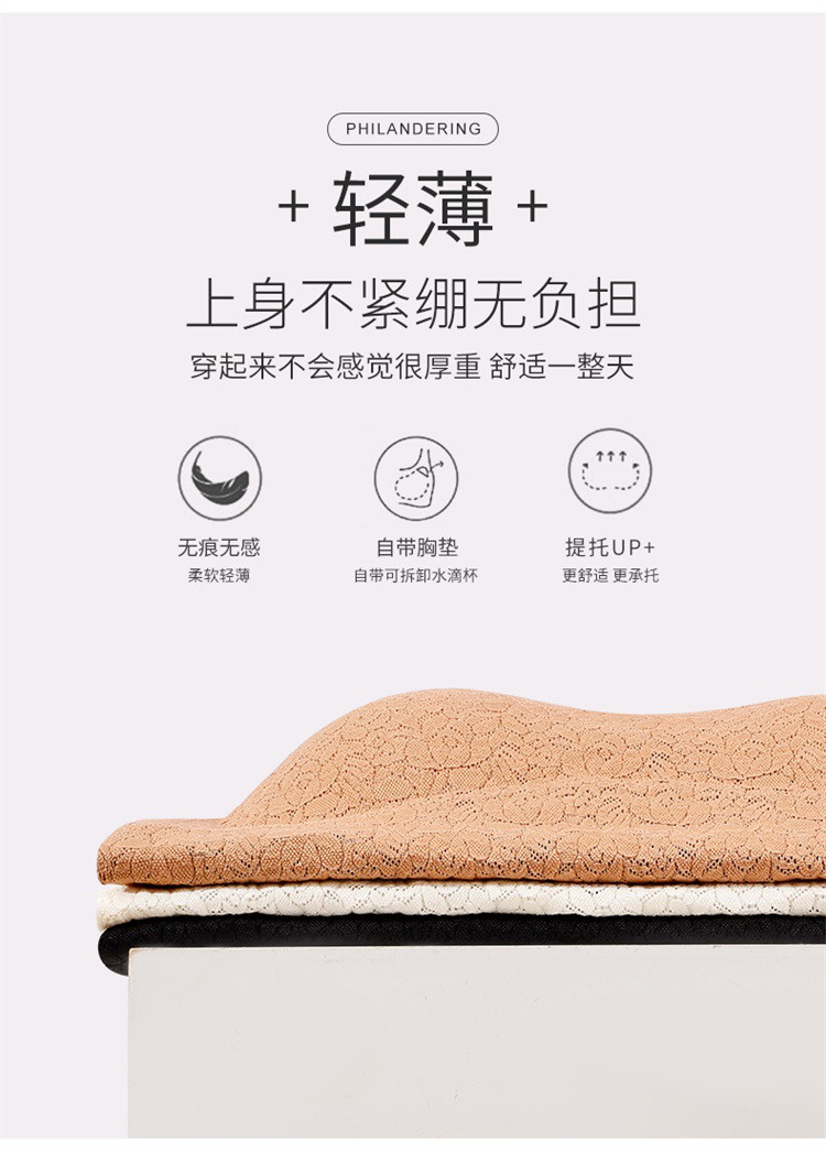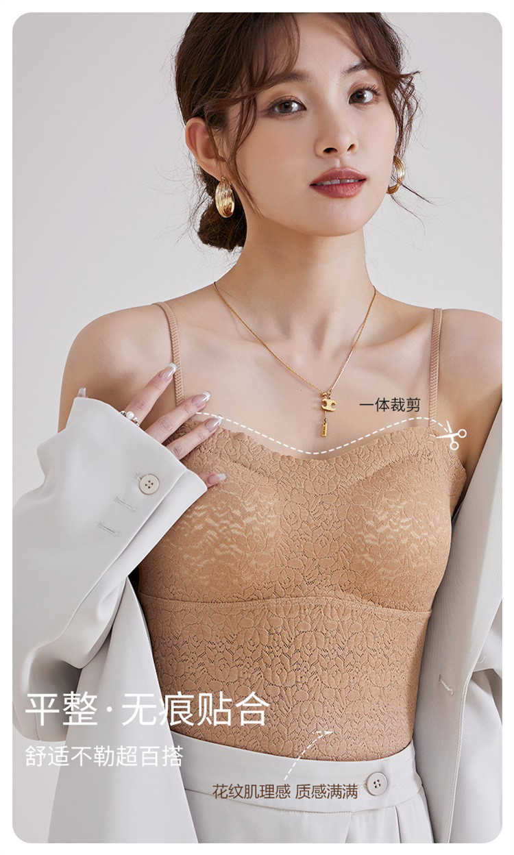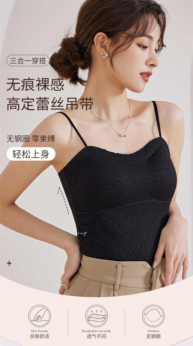 商品名称:【蕾丝美背 自带胸垫】春夏新款花纹蕾丝百搭吊带内衣打底背心 384926