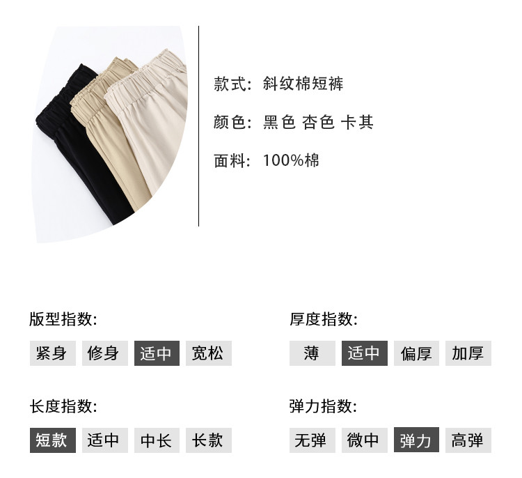 商品名称:【女装】夏季女式纯棉休闲短裤宽松三分裤高腰显瘦通勤百搭 444627