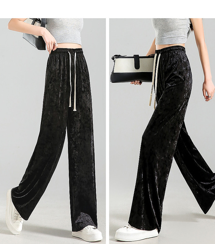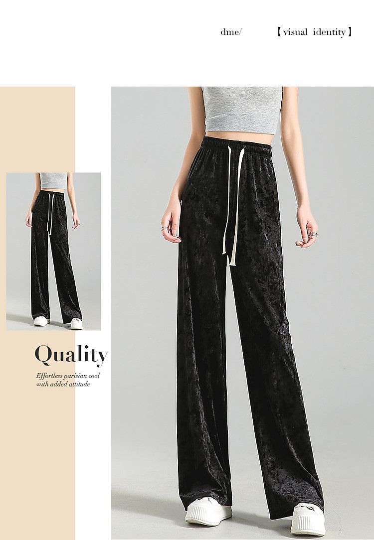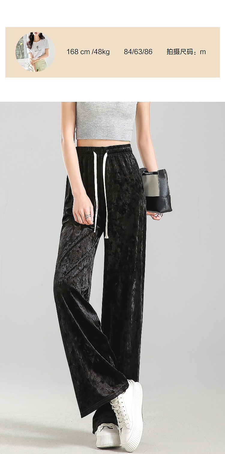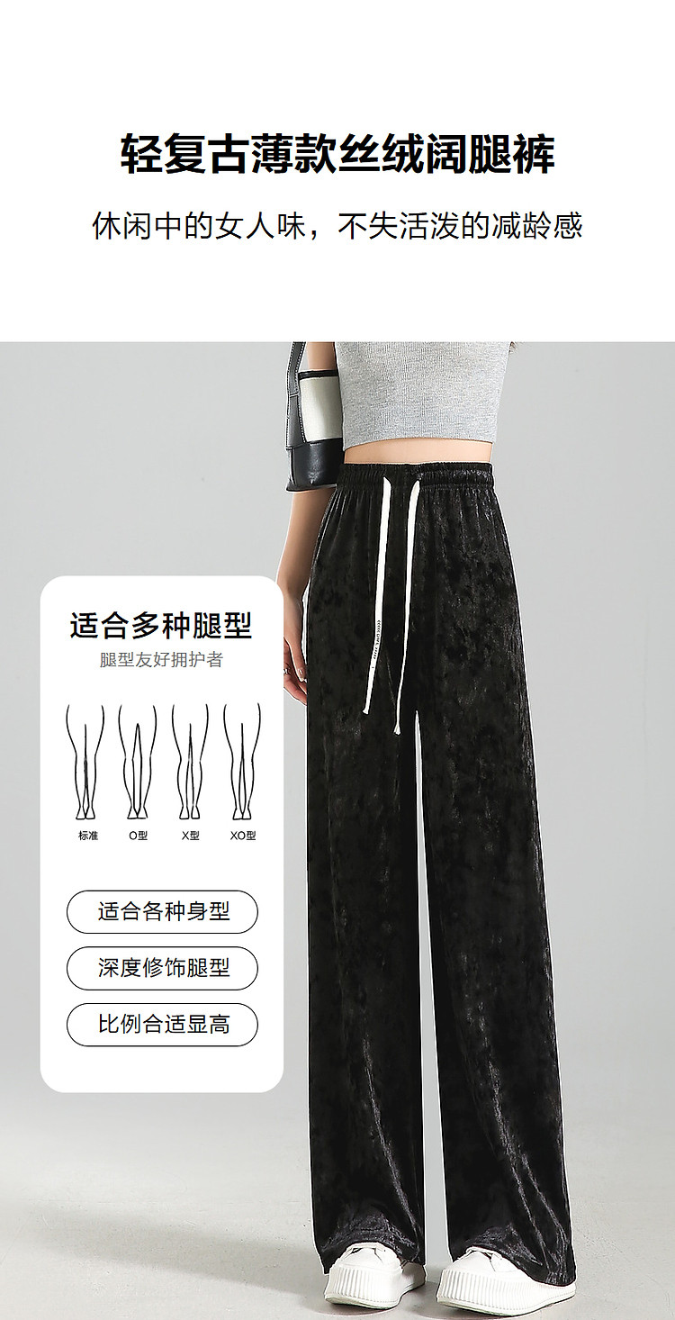商品名称:【丝绒草莓拿铁】夏轻复古抽绳松紧腰优雅女式阔腿藏肉好搭休闲裤 872897