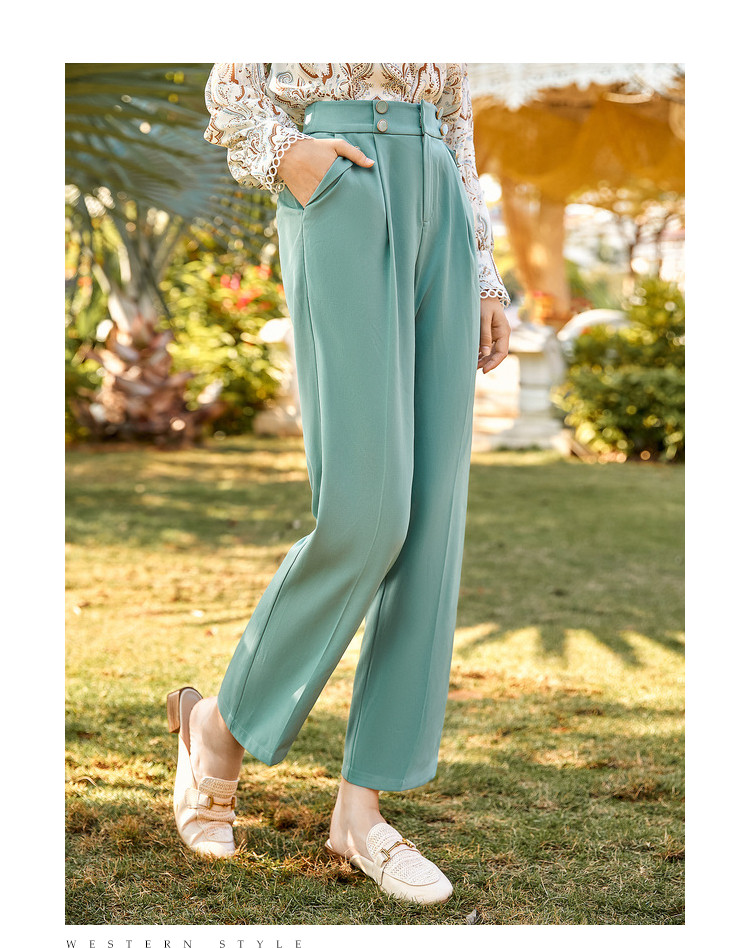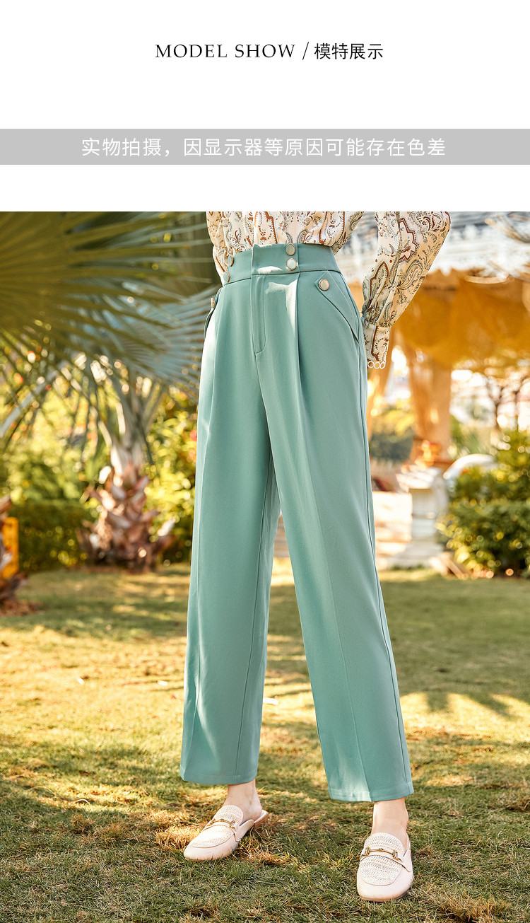 春秋高腰直筒裤女通勤简约清爽休闲裤 462548