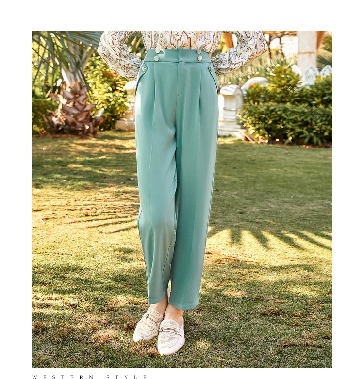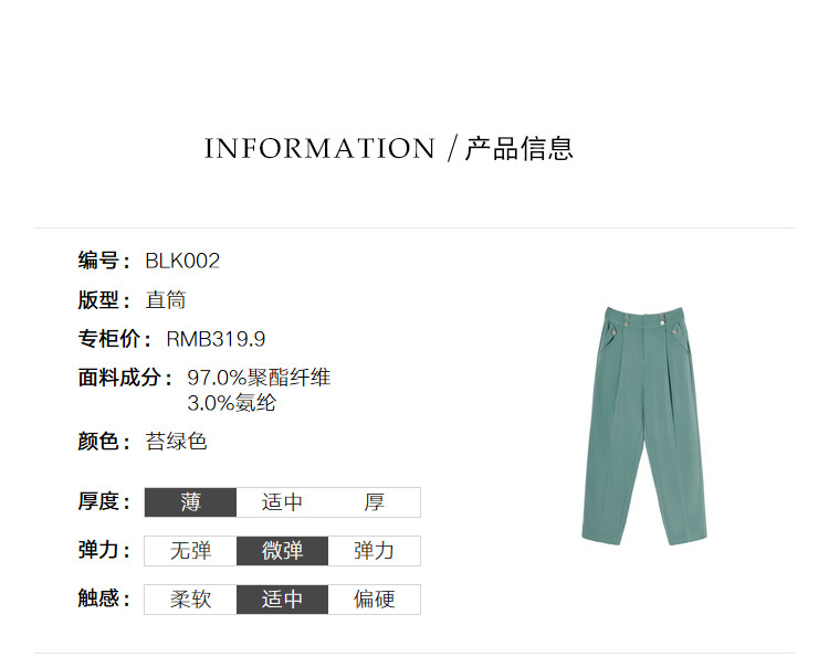 商品名称:春秋高腰直筒裤女通勤简约清爽休闲裤 462548