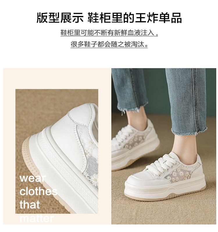 夏季时尚潮流甜美网面小雏菊舒适厚底小白鞋女休闲鞋 566849