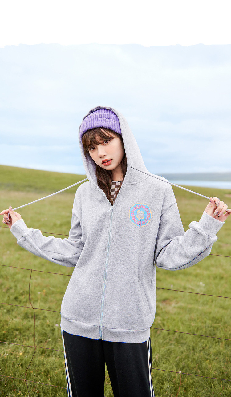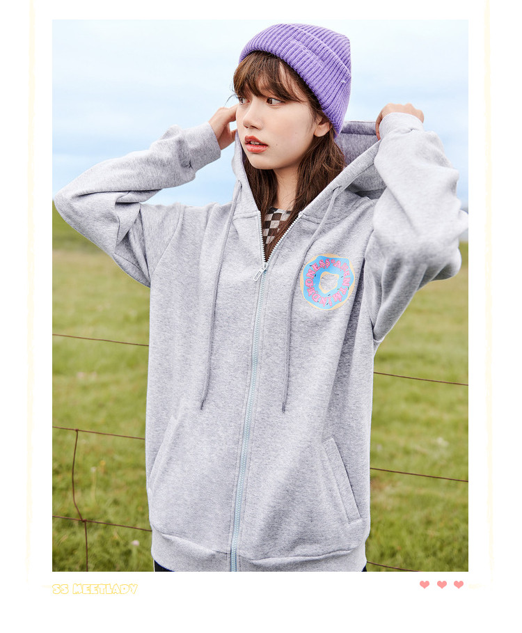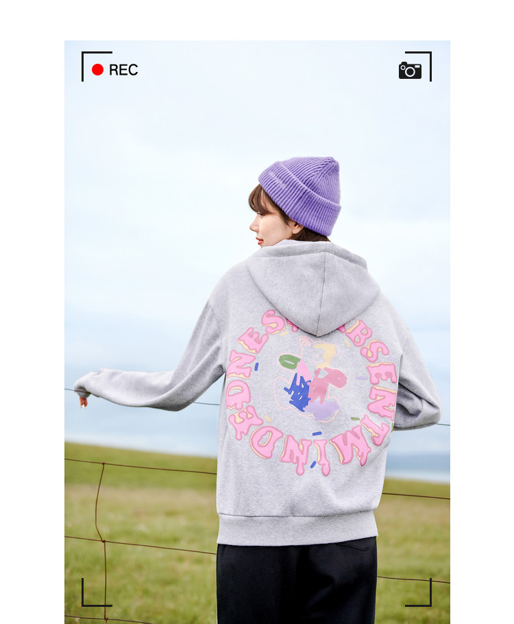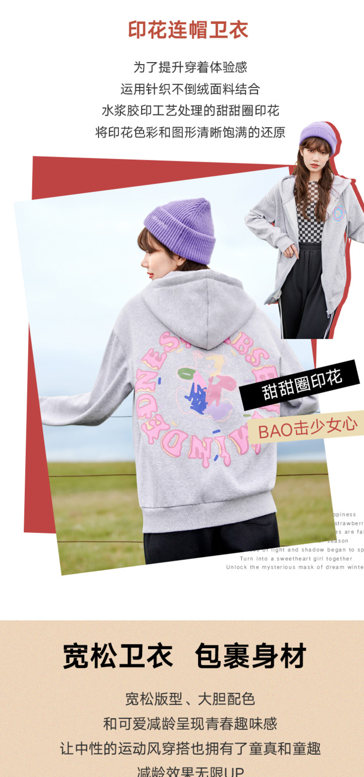 冬印花连帽卫衣女时尚简约休闲宽松长袖开衫 516052