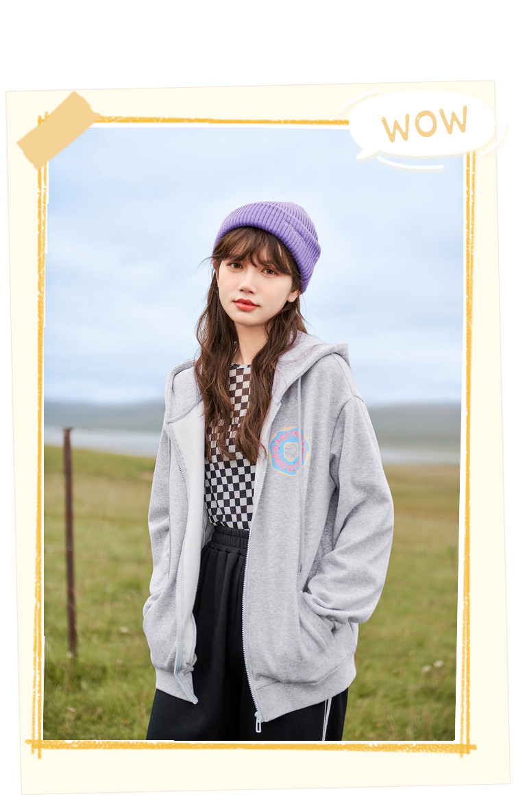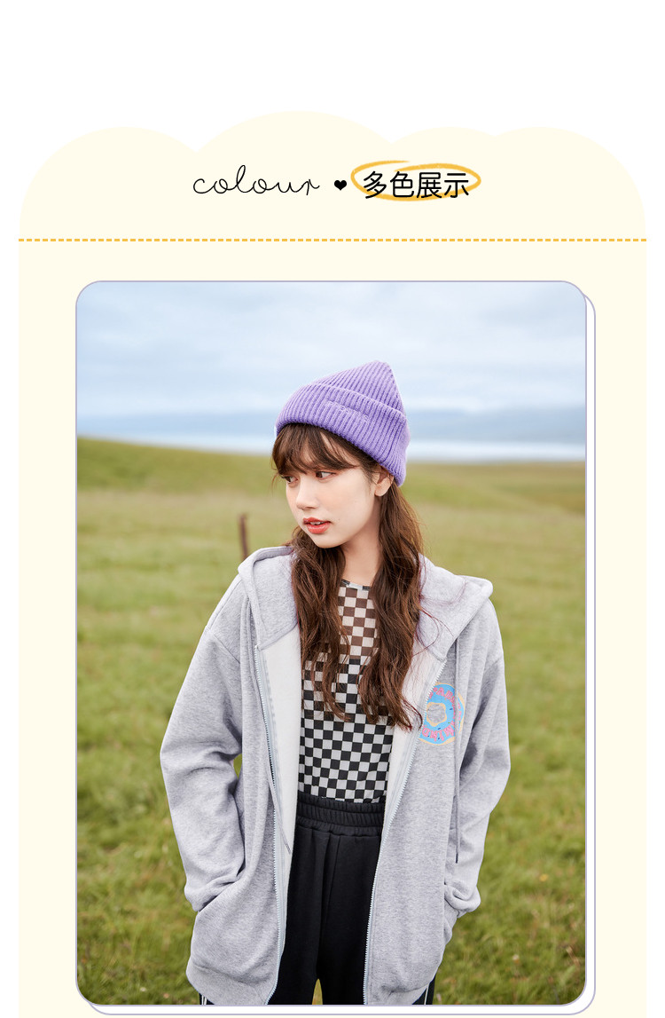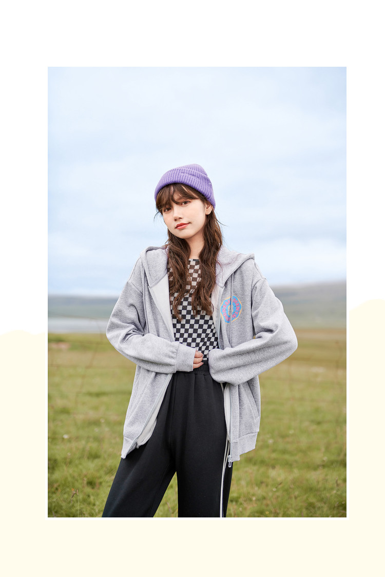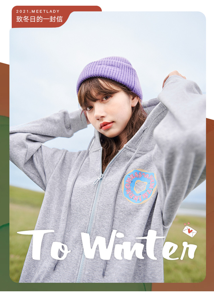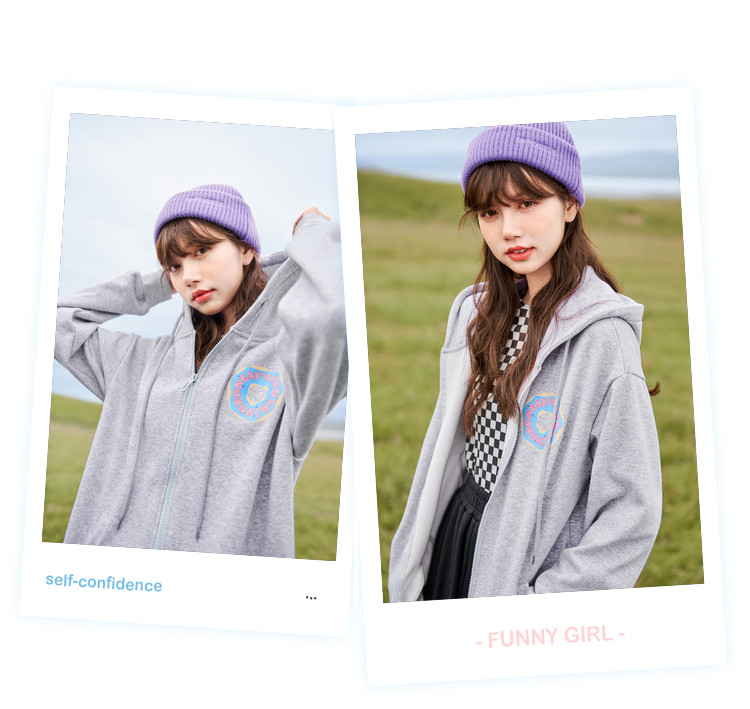 冬印花连帽卫衣女时尚简约休闲宽松长袖开衫 516052