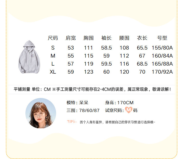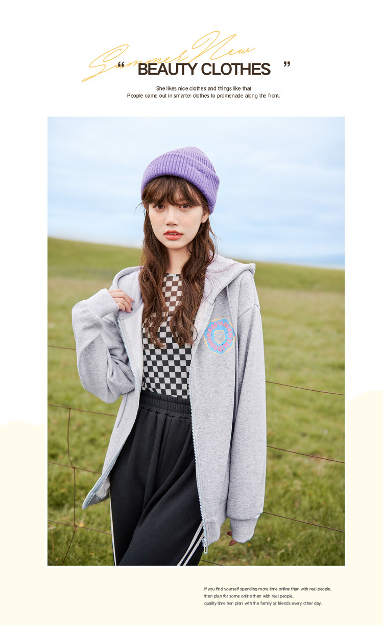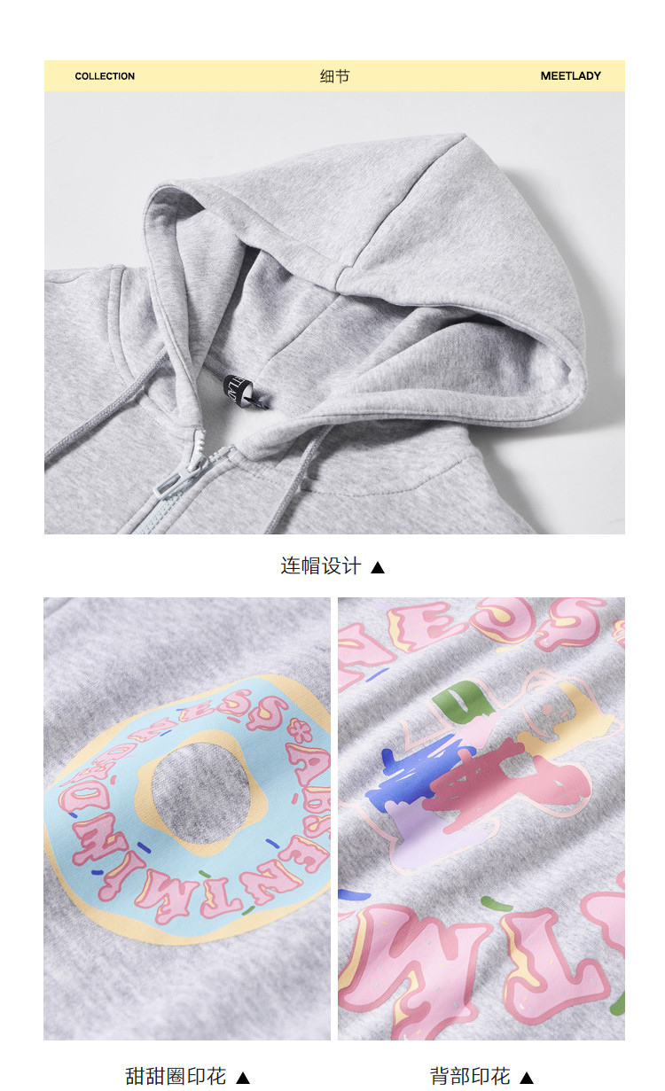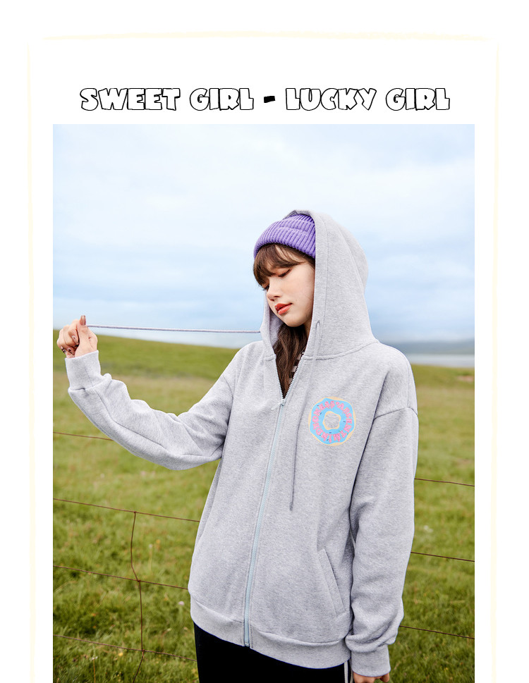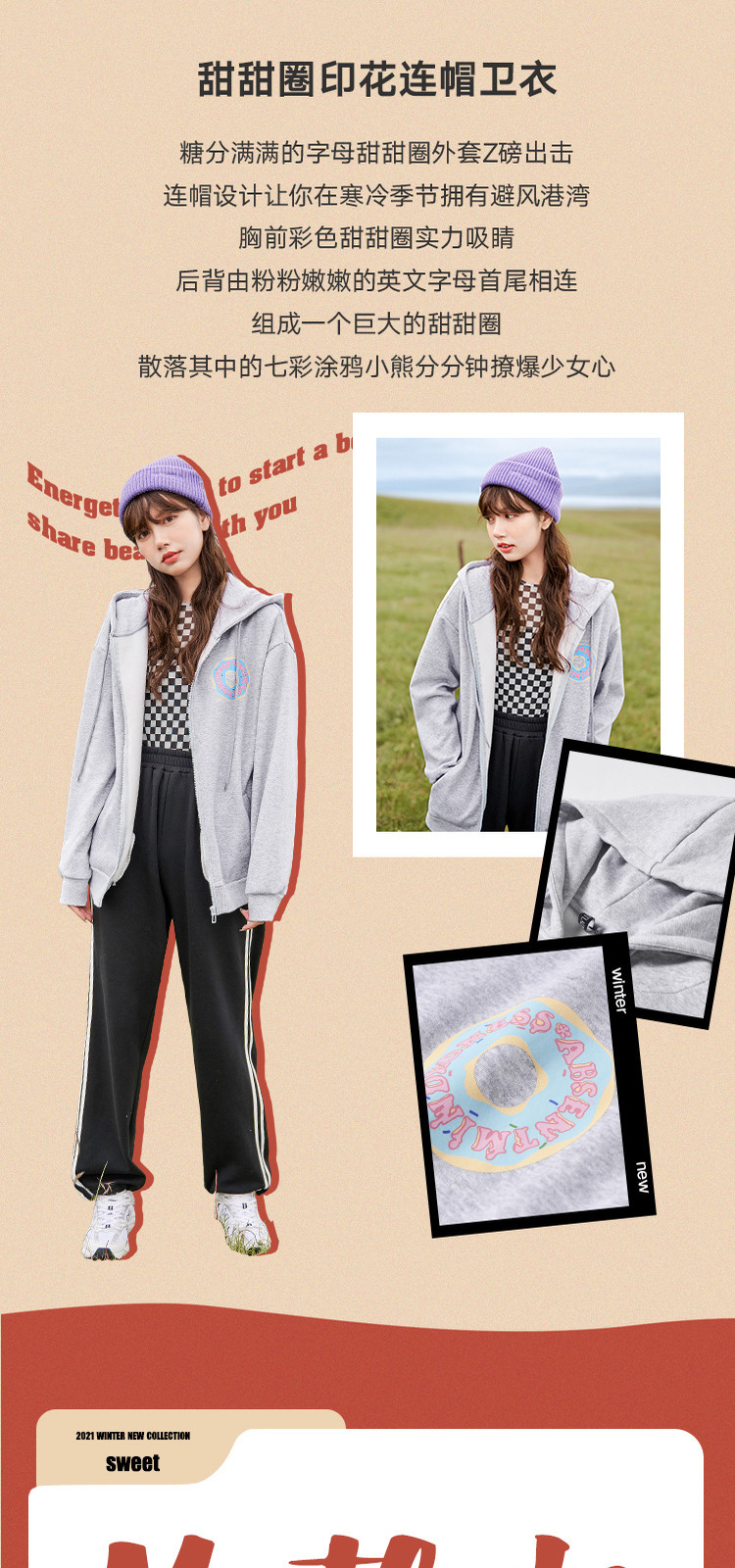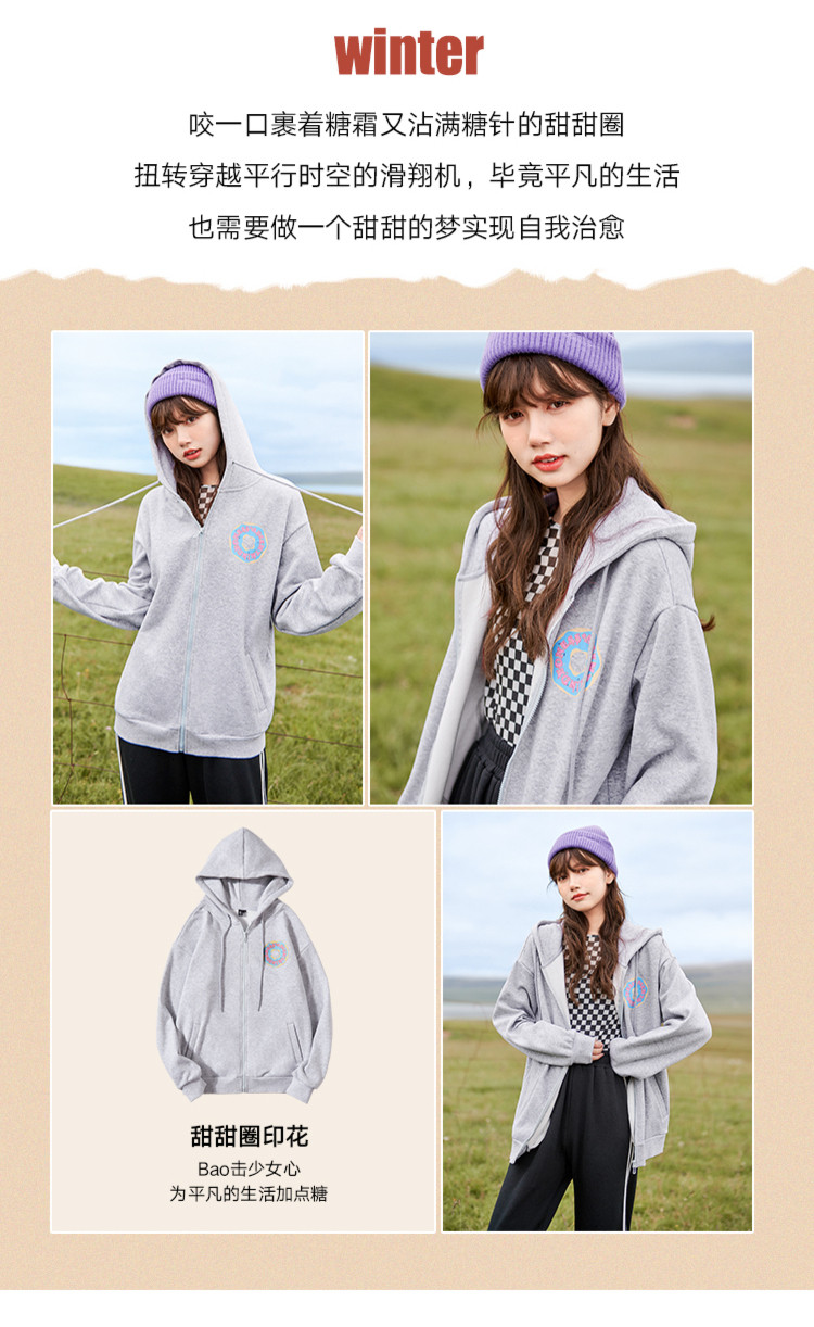 商品名称:冬印花连帽卫衣女时尚简约休闲宽松长袖开衫 516052