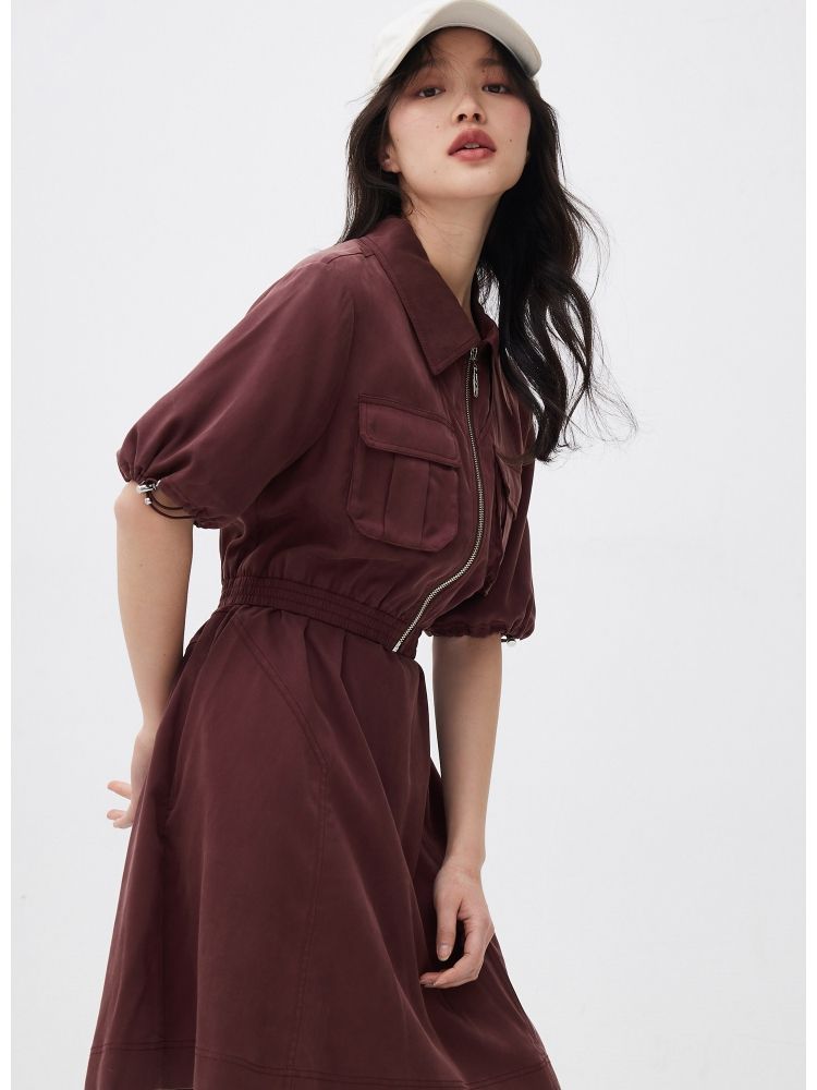 【通勤休闲】夏季收腰短袖假两件短裙连衣裙女 208922