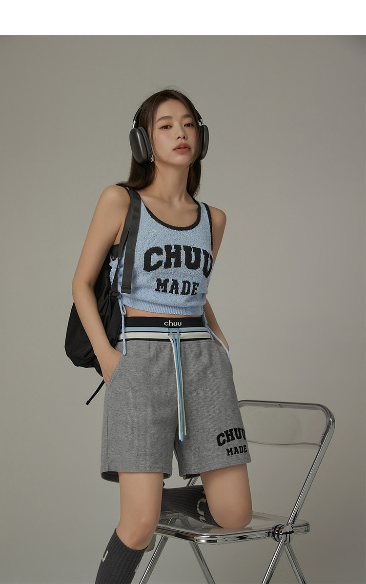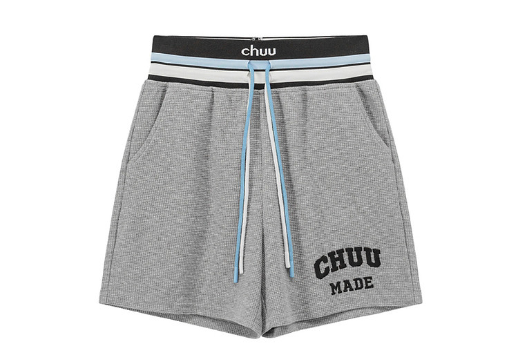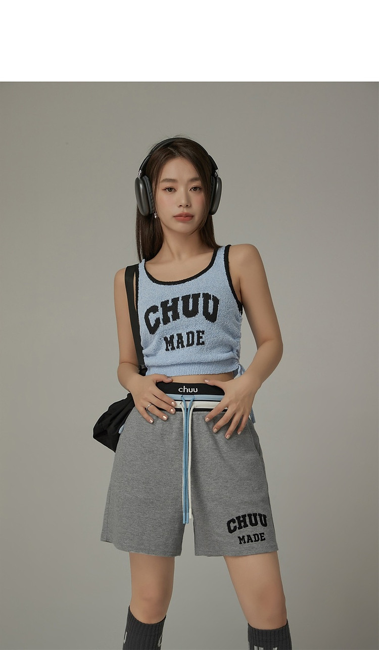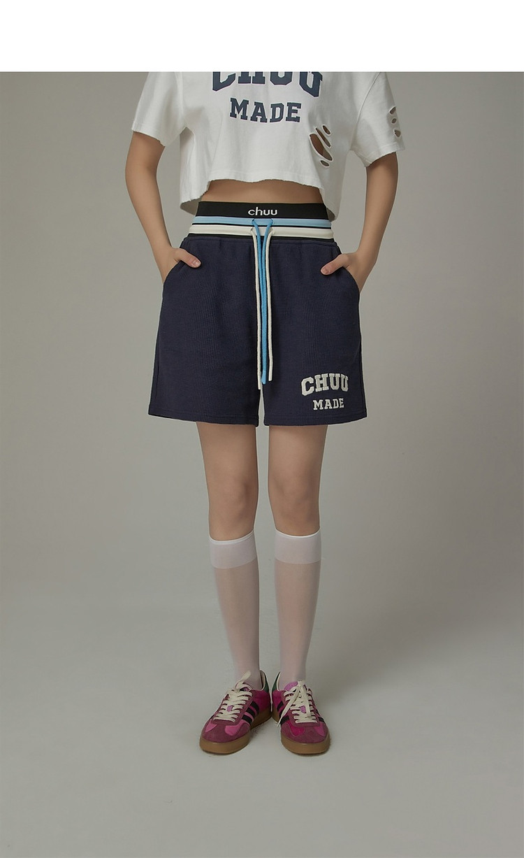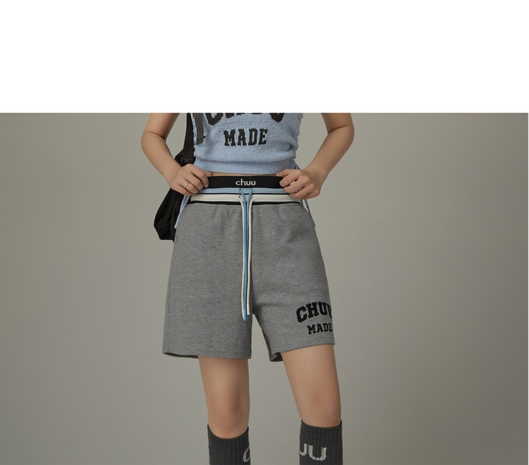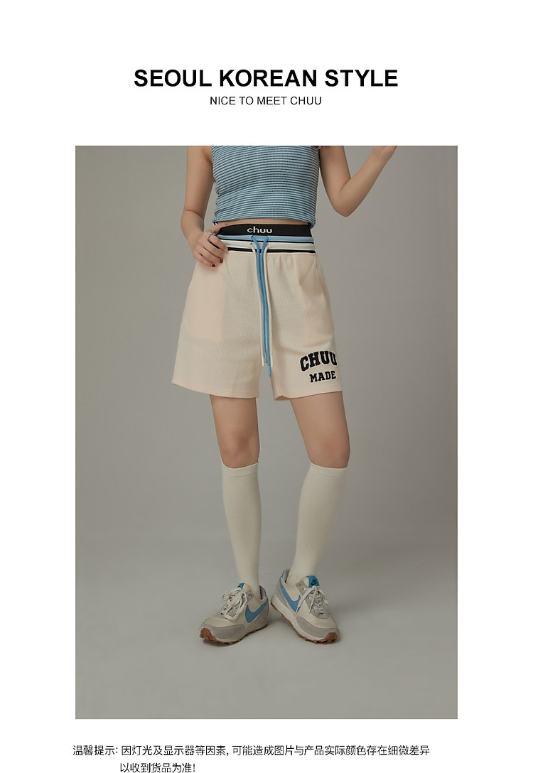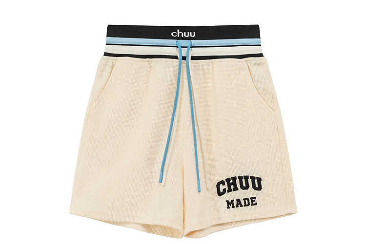 商品名称:CHUU字母束脚休闲裤女夏高腰华夫格印花休闲长裤 739347
