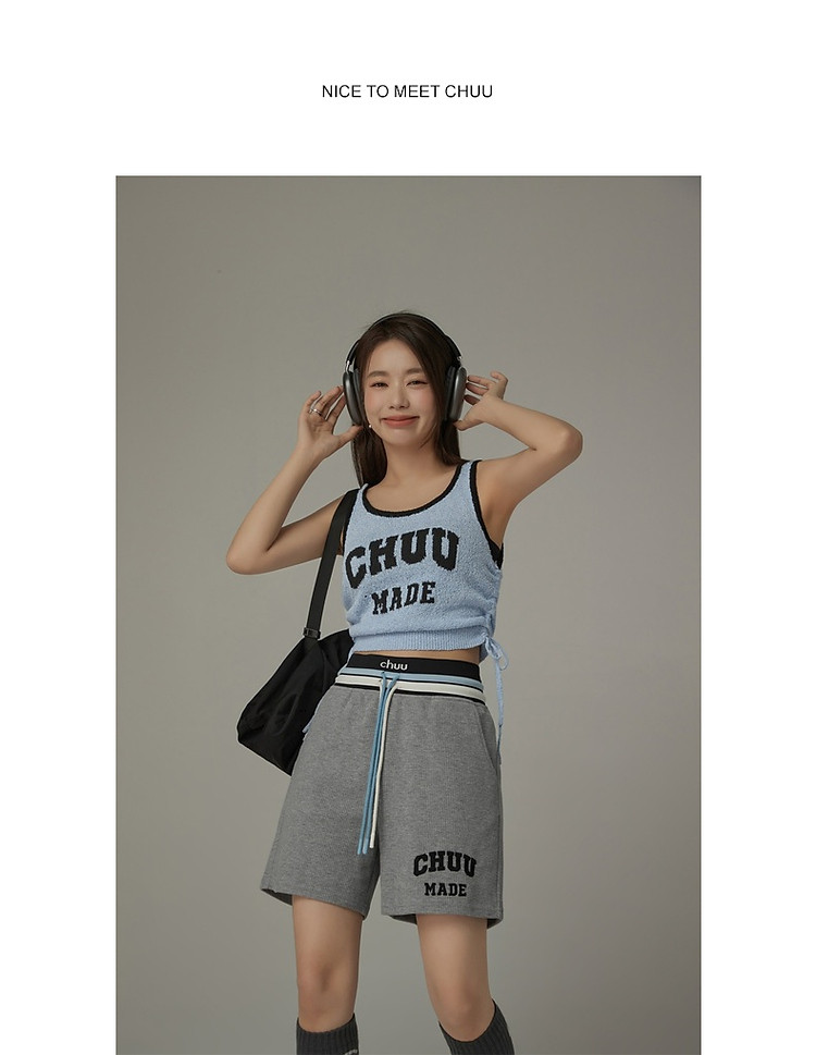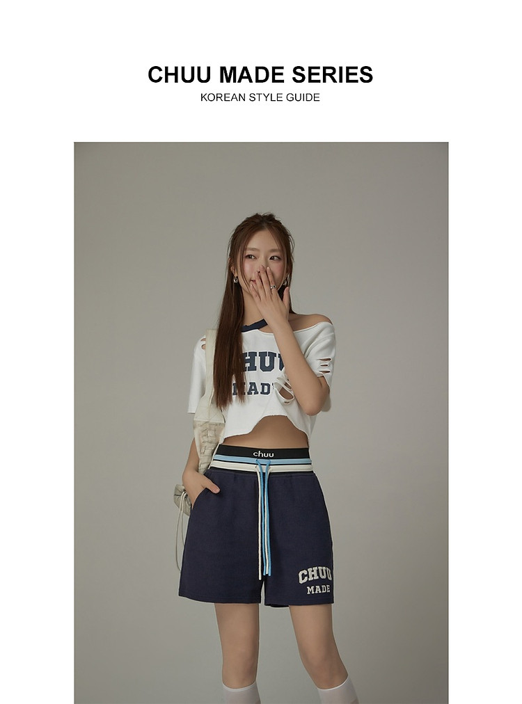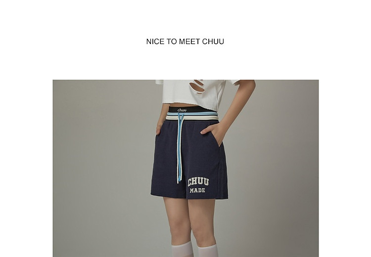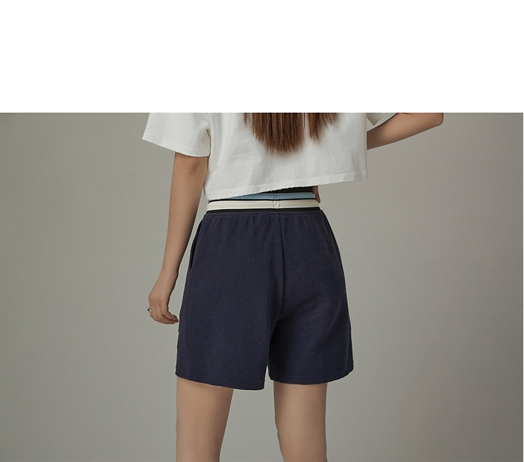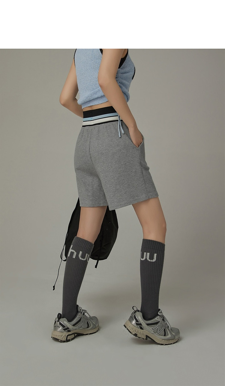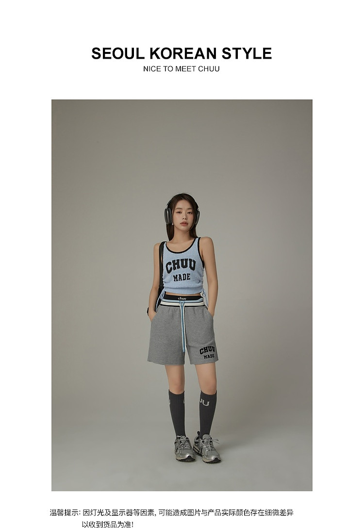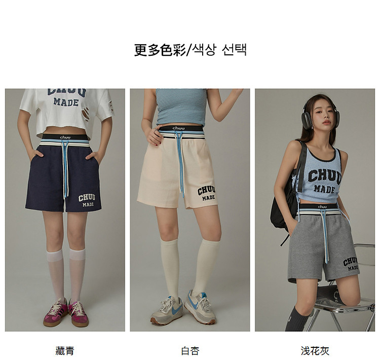 商品名称:CHUU字母束脚休闲裤女夏高腰华夫格印花休闲长裤 739347