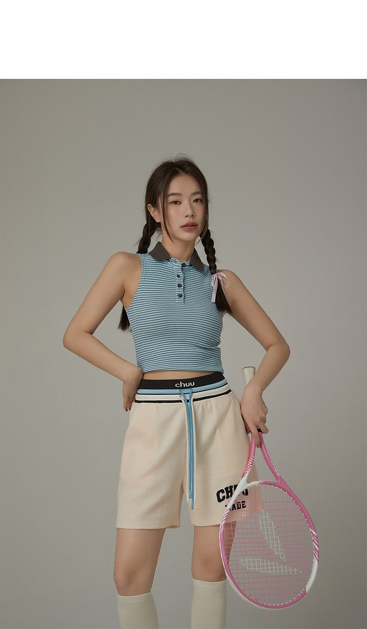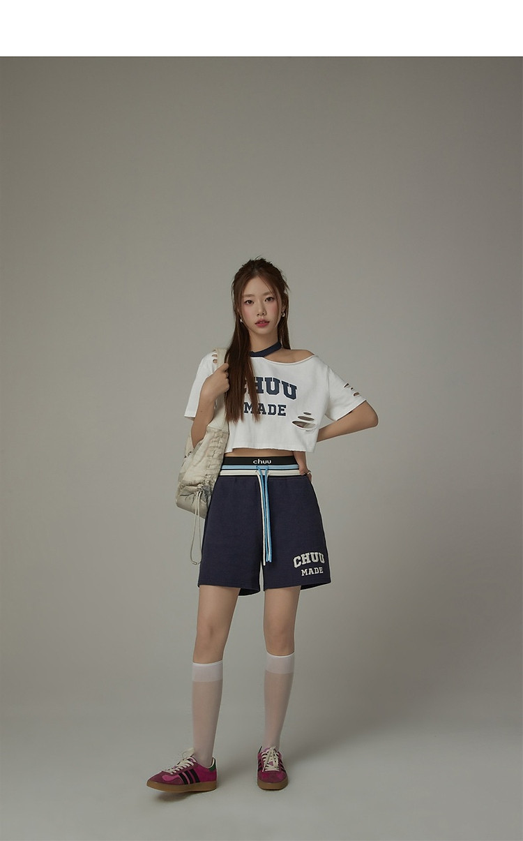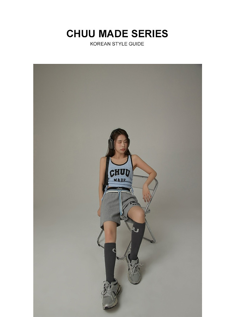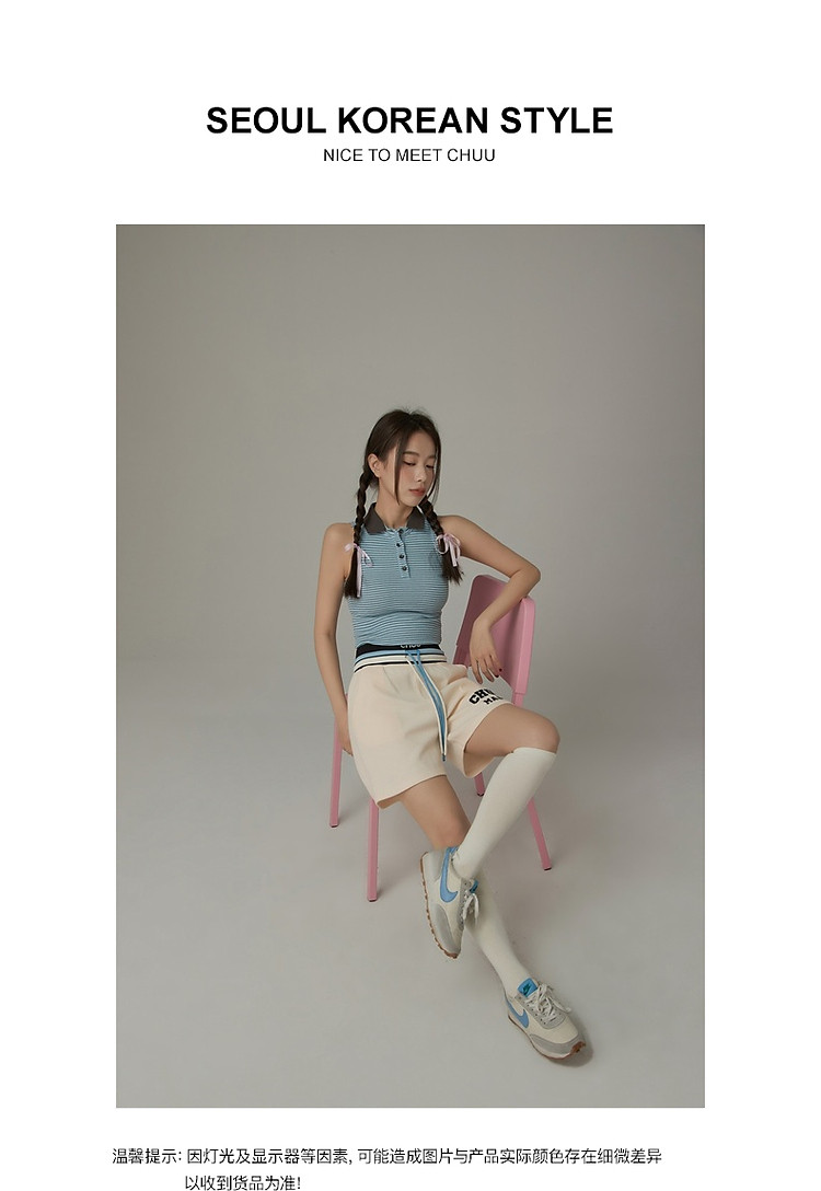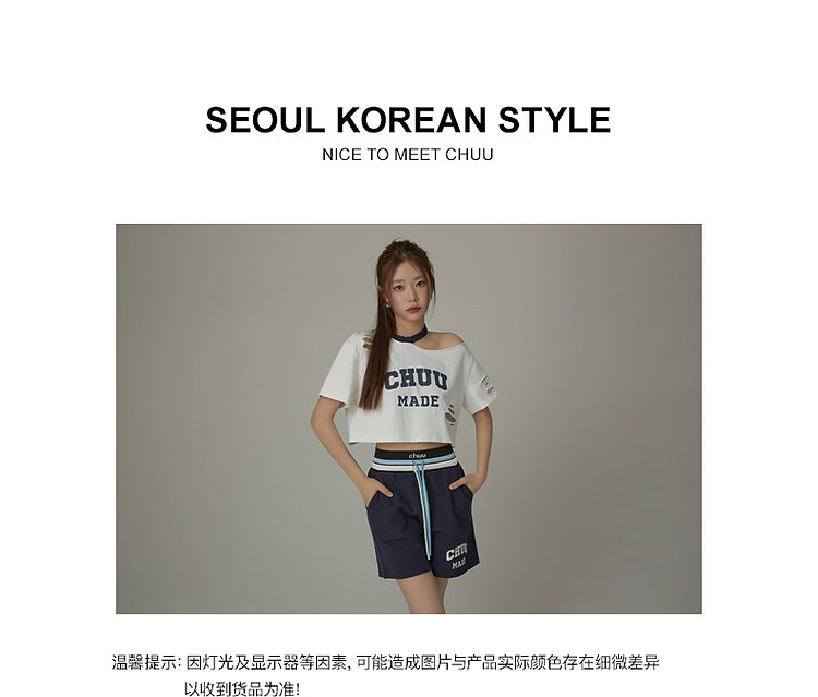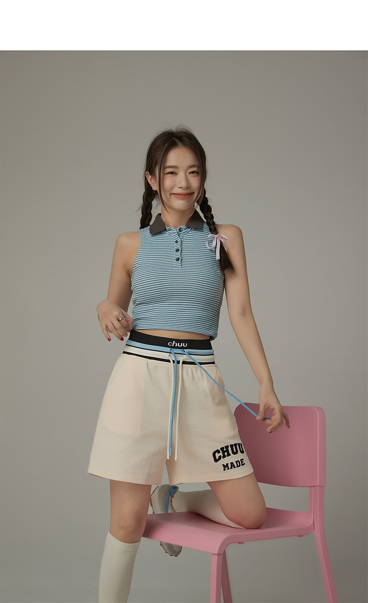 商品名称:CHUU字母束脚休闲裤女夏高腰华夫格印花休闲长裤 739347