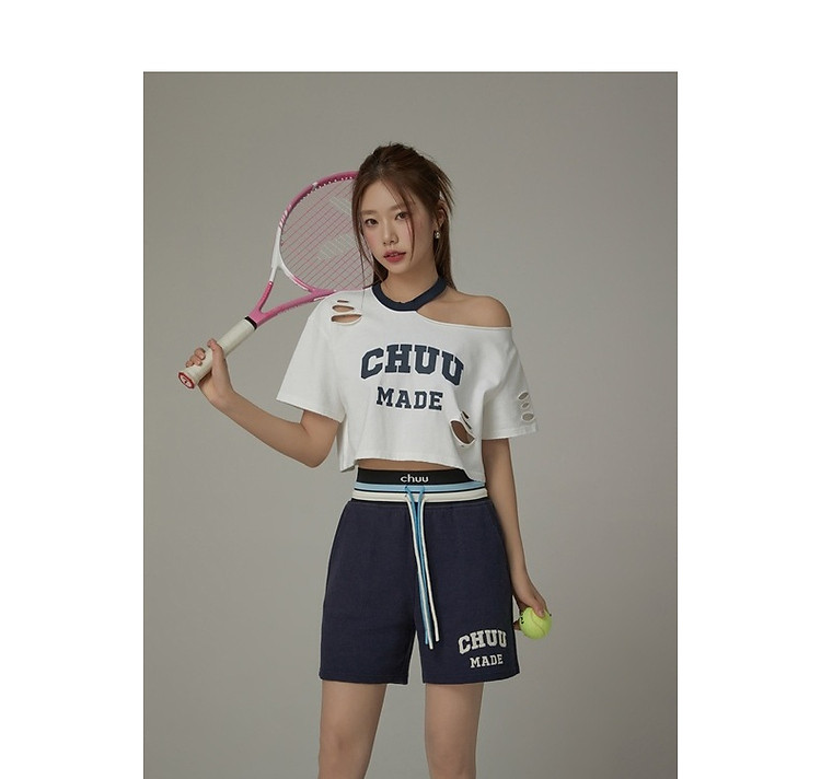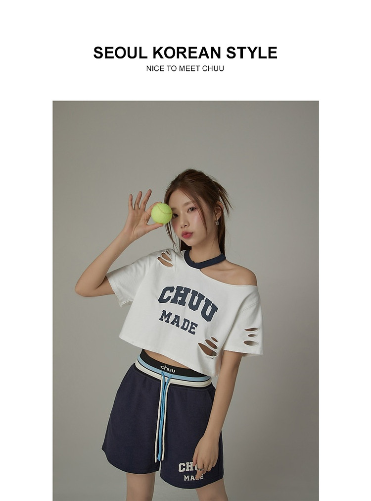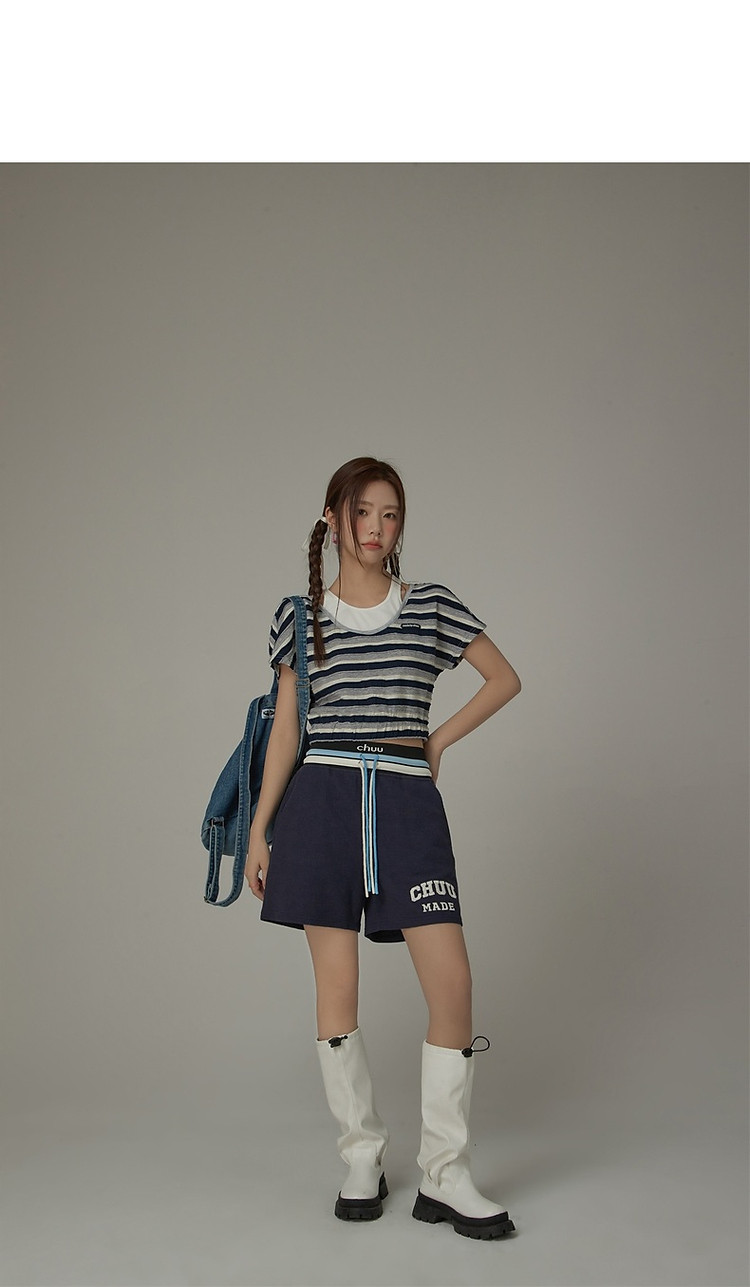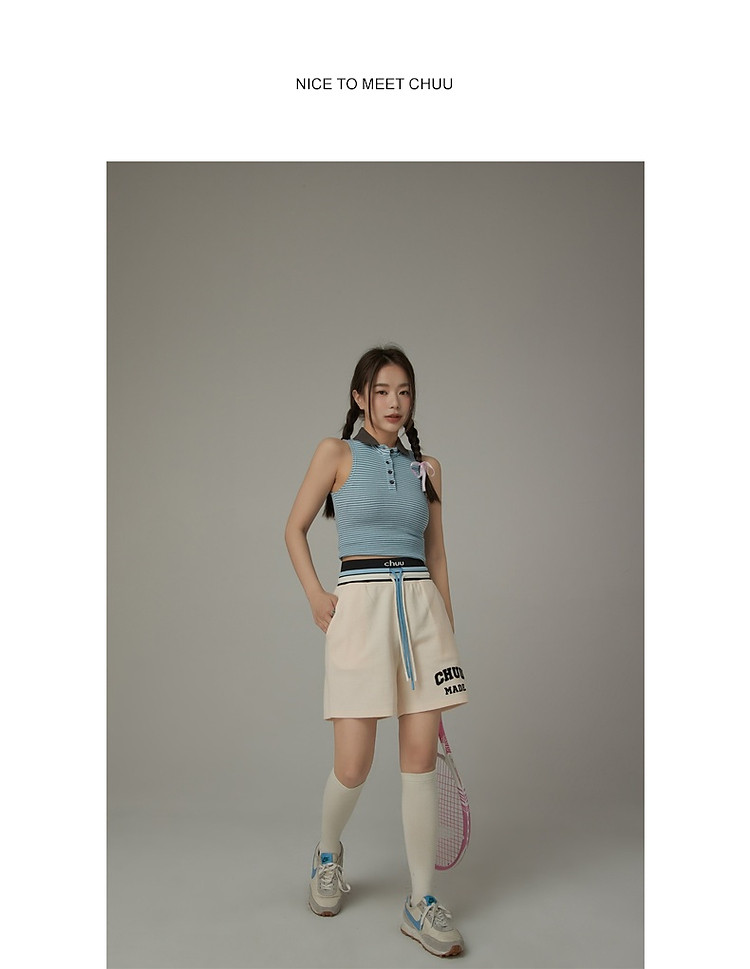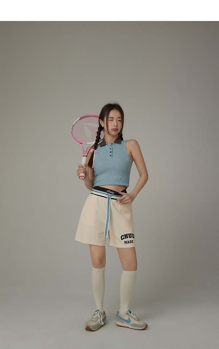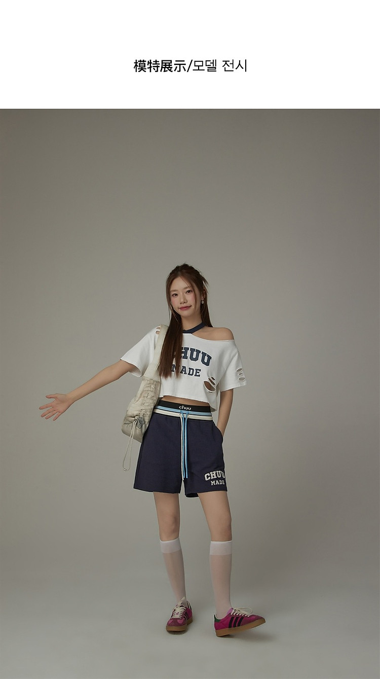 商品名称:CHUU字母束脚休闲裤女夏高腰华夫格印花休闲长裤 739347