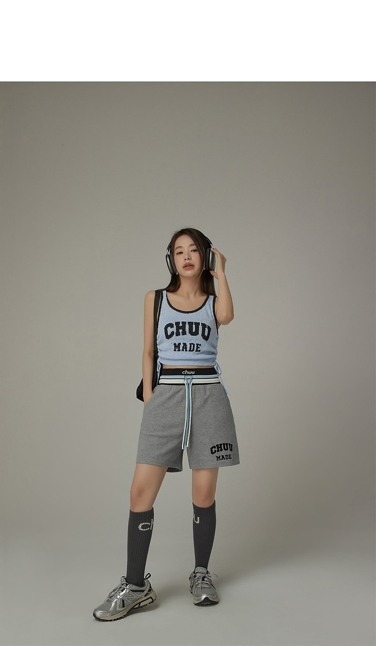 CHUU字母束脚休闲裤女夏高腰华夫格印花休闲长裤 739347