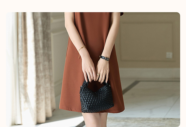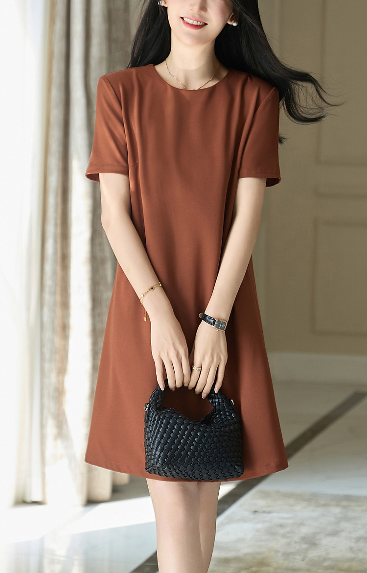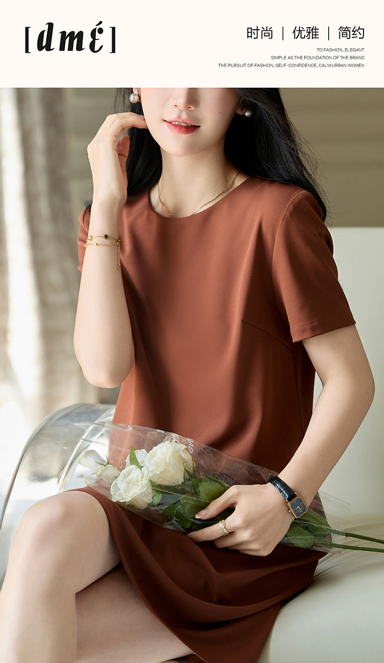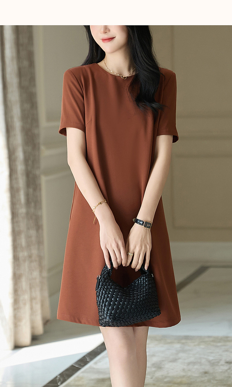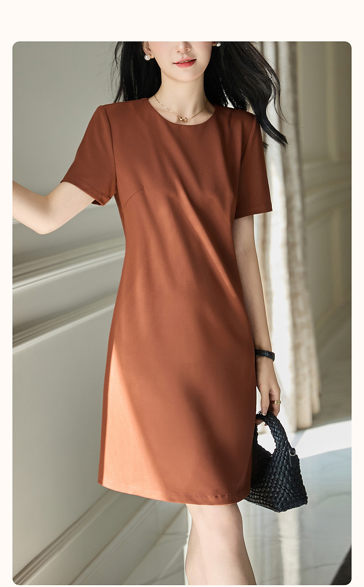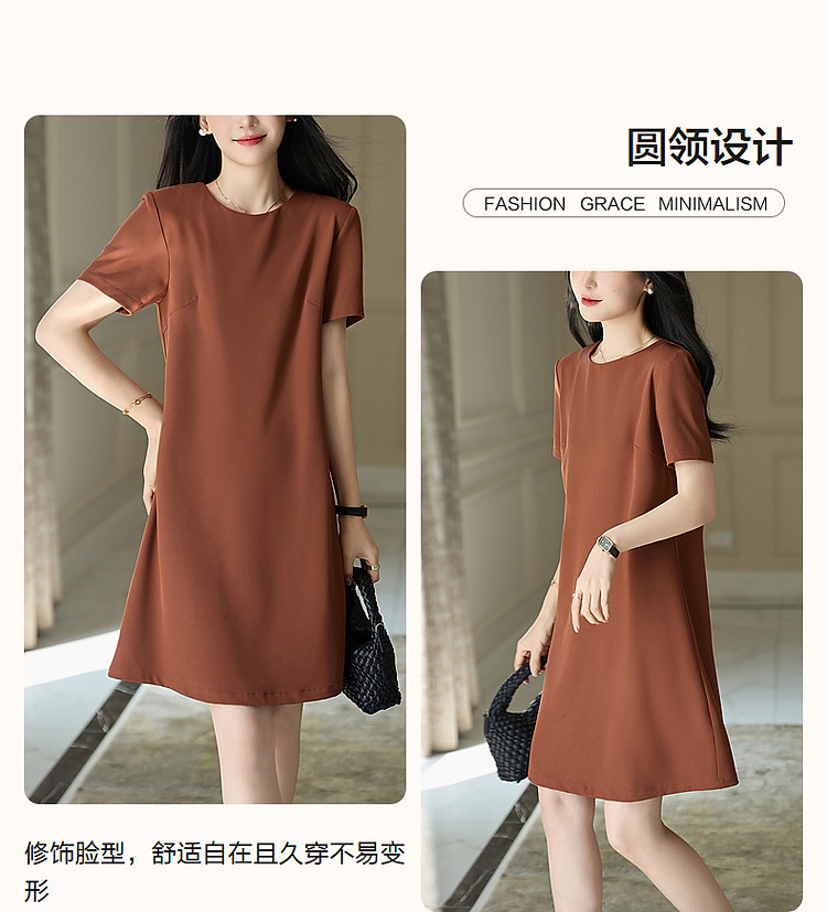 商品名称:【美拉德通勤】夏简约风圆领直筒显瘦藏肉都市休闲连衣裙女百搭 326529