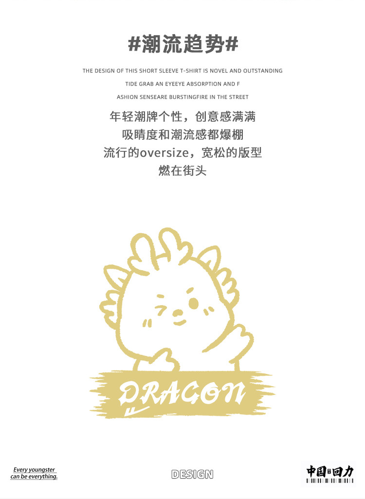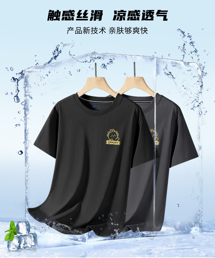 商品名称:【冰感透气】短袖T恤男夏季冰丝薄款中国风卡通龙元素印花半袖男 142675