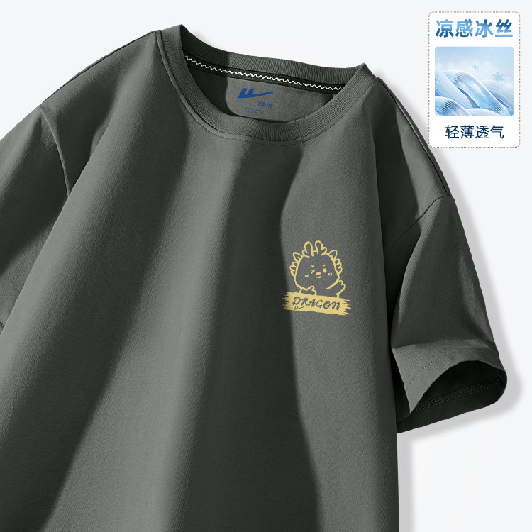 【冰感透气】短袖T恤男夏季冰丝薄款中国风卡通龙元素印花半袖男 142675