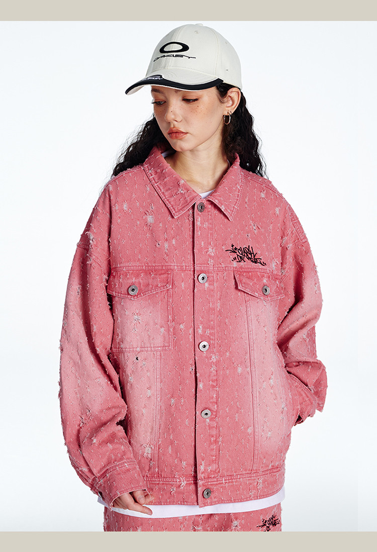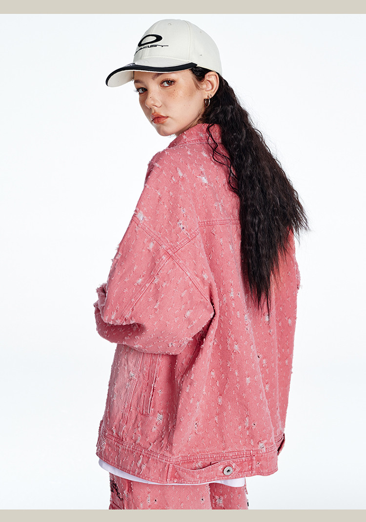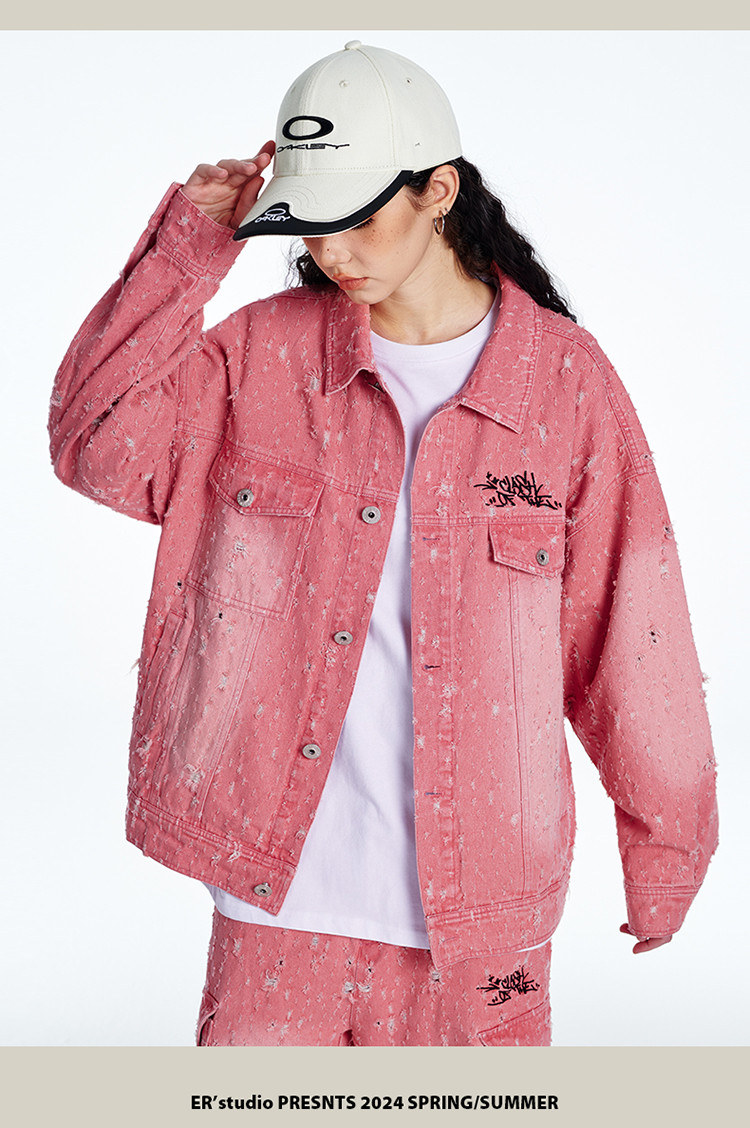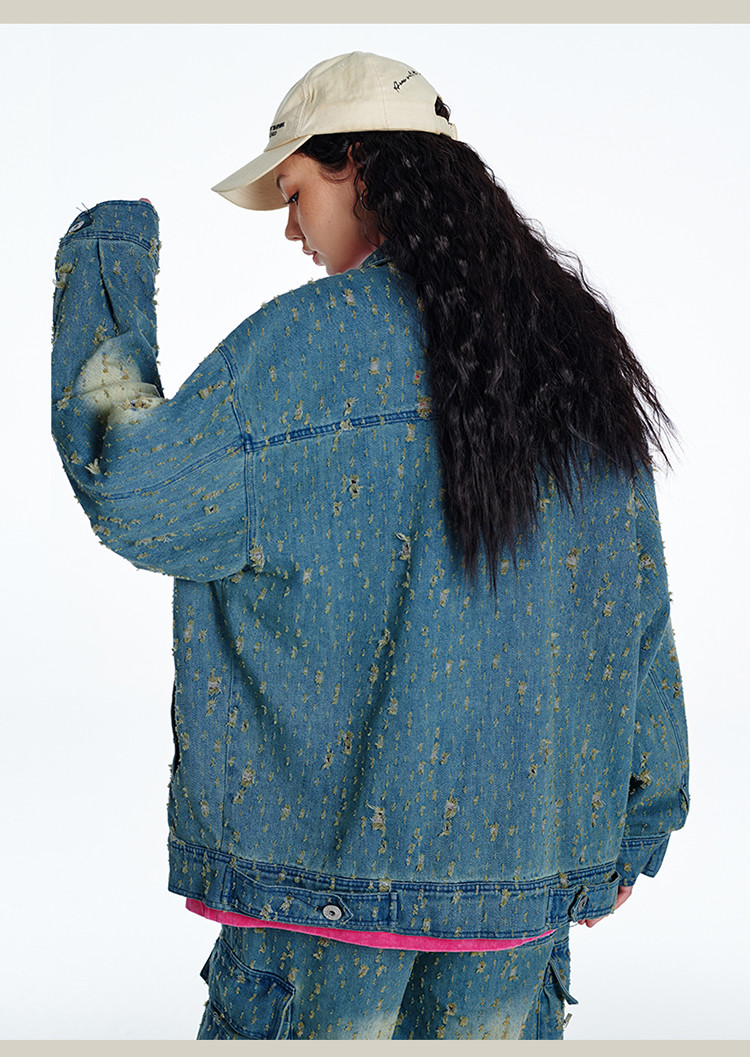 做旧破洞水洗牛仔夹克2024春季新款高街潮牌情侣外套男女同款 344279
