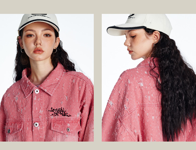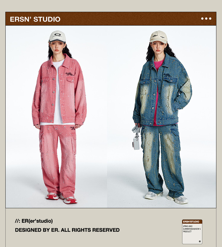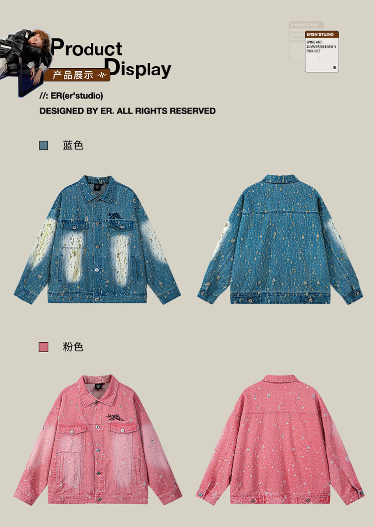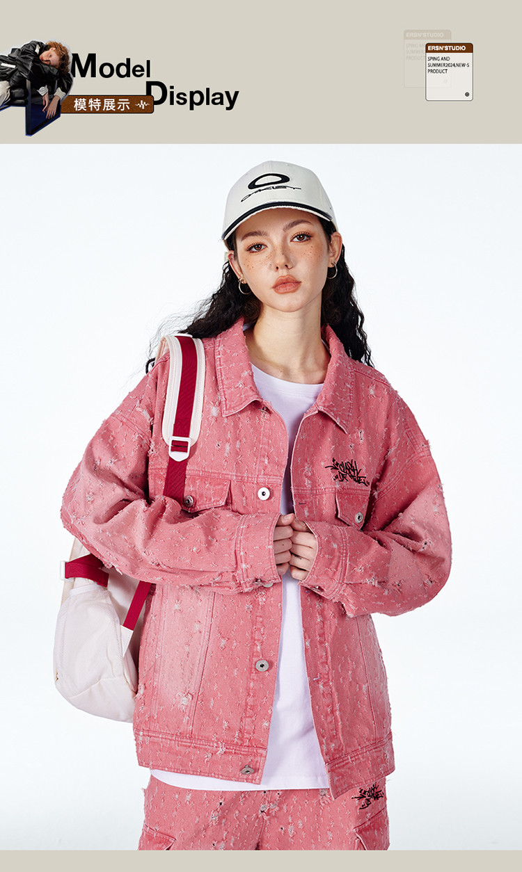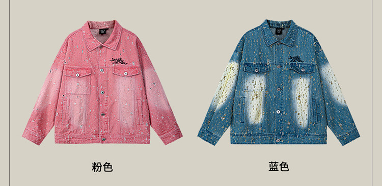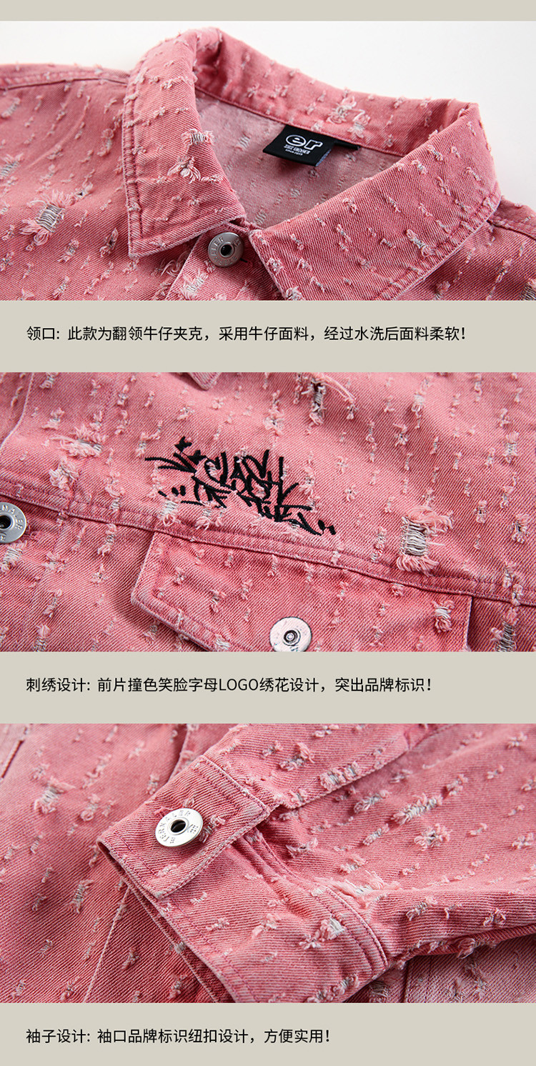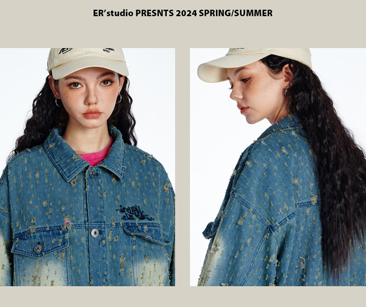 商品名称:做旧破洞水洗牛仔夹克2024春季新款高街潮牌情侣外套男女同款 344279