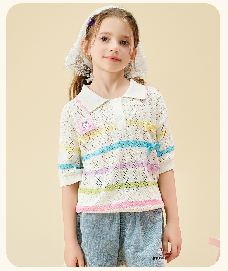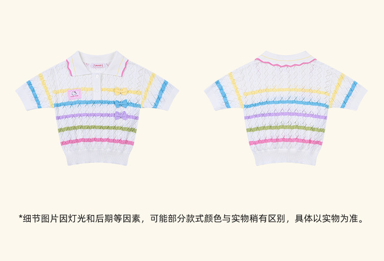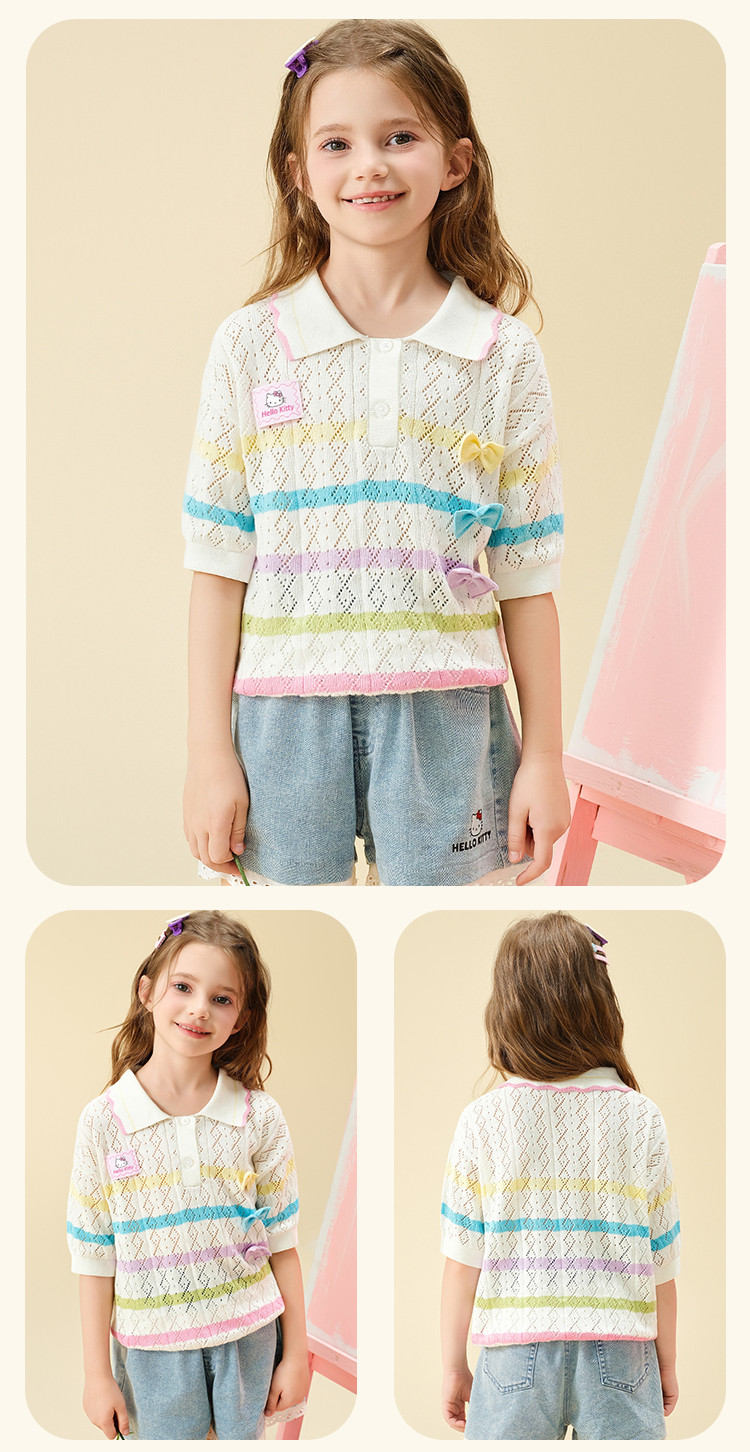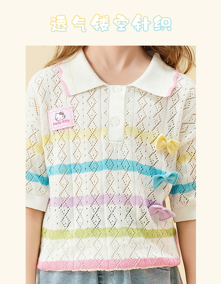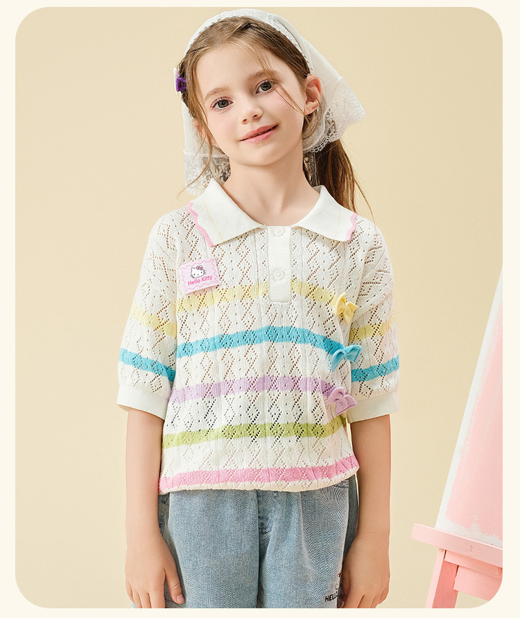 商品名称:彩虹撞色毛线T恤2025款女宝夏季毛衣舒适透气可爱女童装 973598