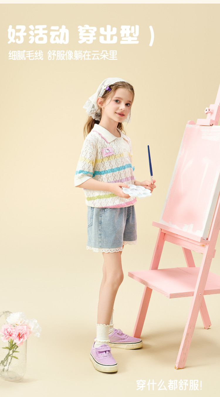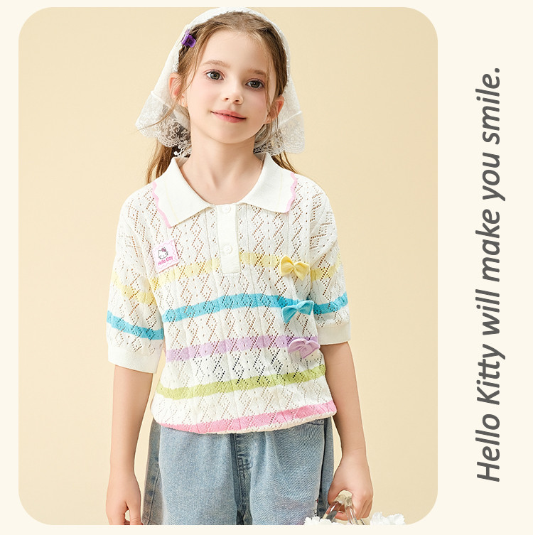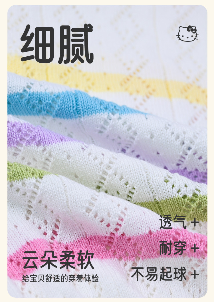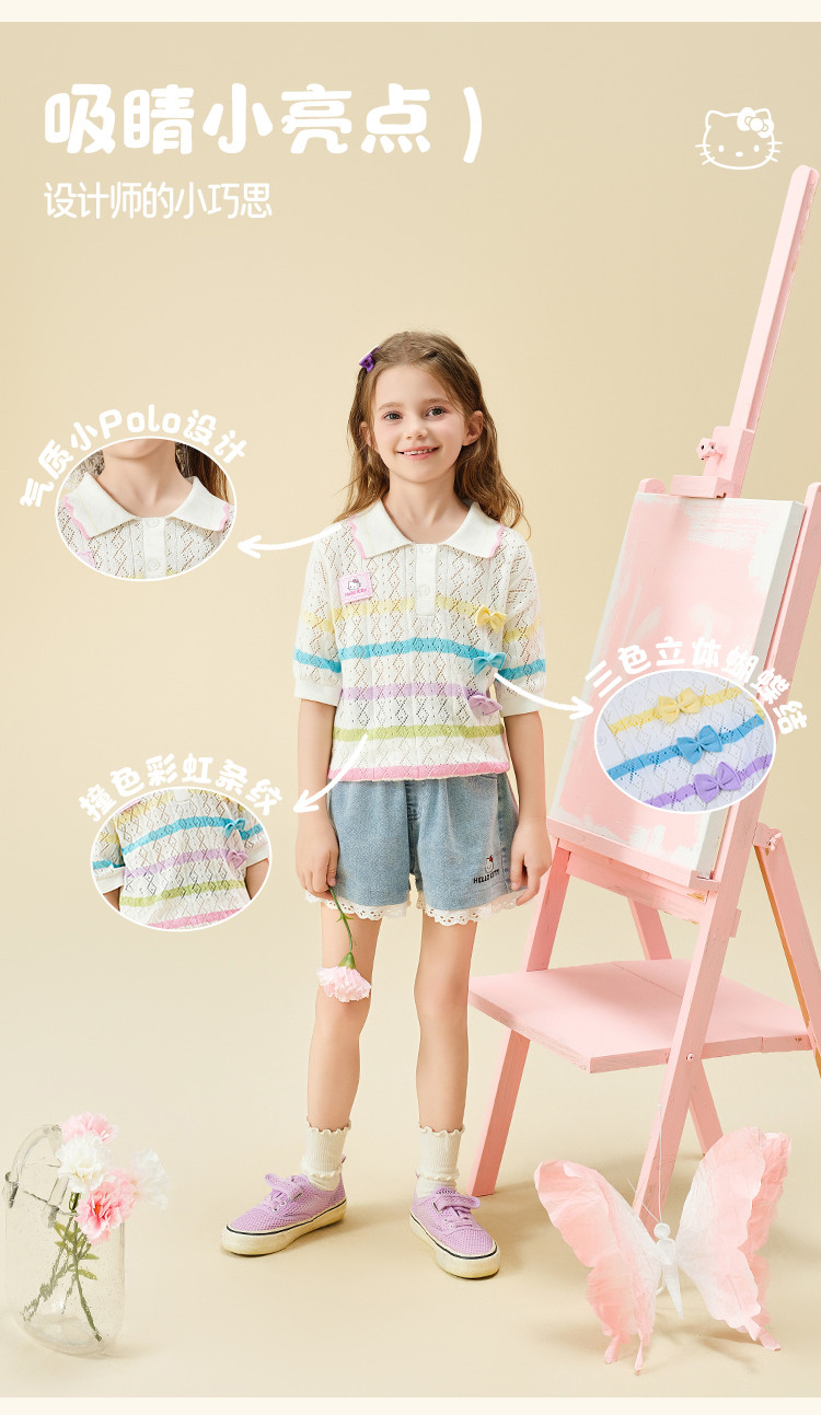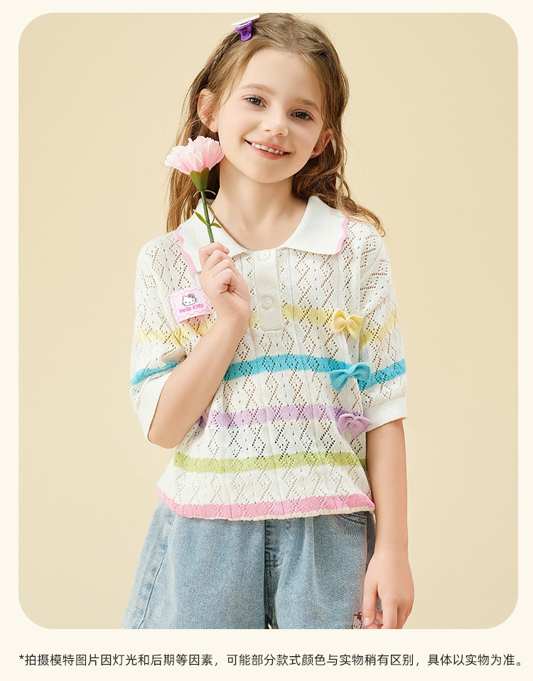 商品名称:彩虹撞色毛线T恤2025款女宝夏季毛衣舒适透气可爱女童装 973598