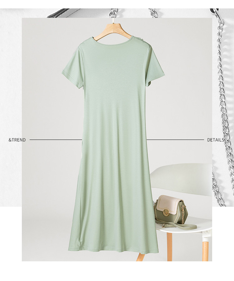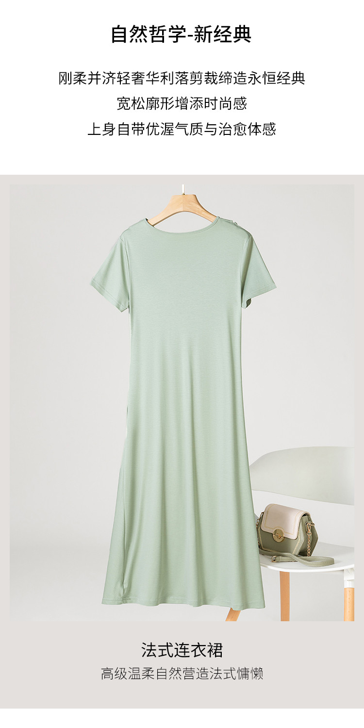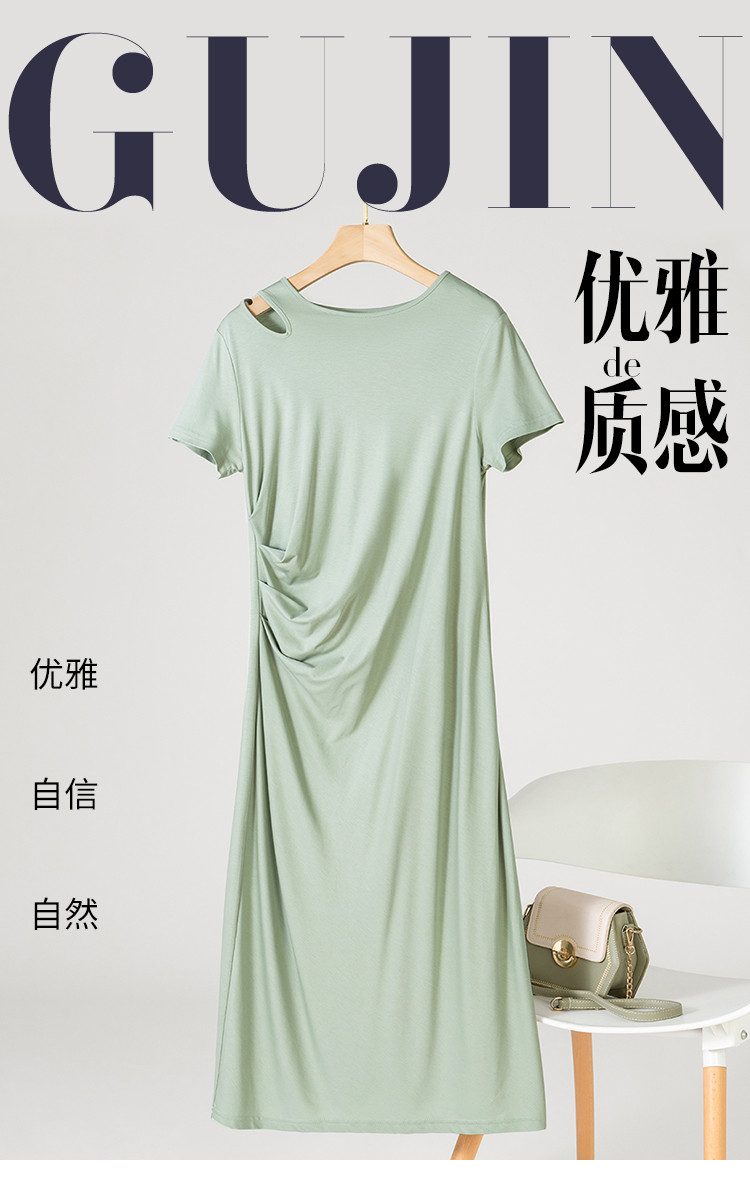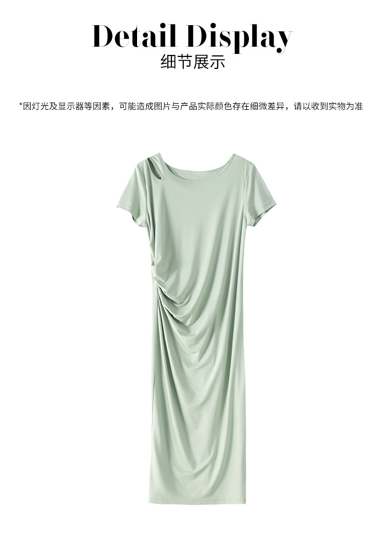 商品名称:【小黑裙】赫本风夏季圆领短袖褶皱设计含桑蚕丝法式连衣裙中长裙 969619