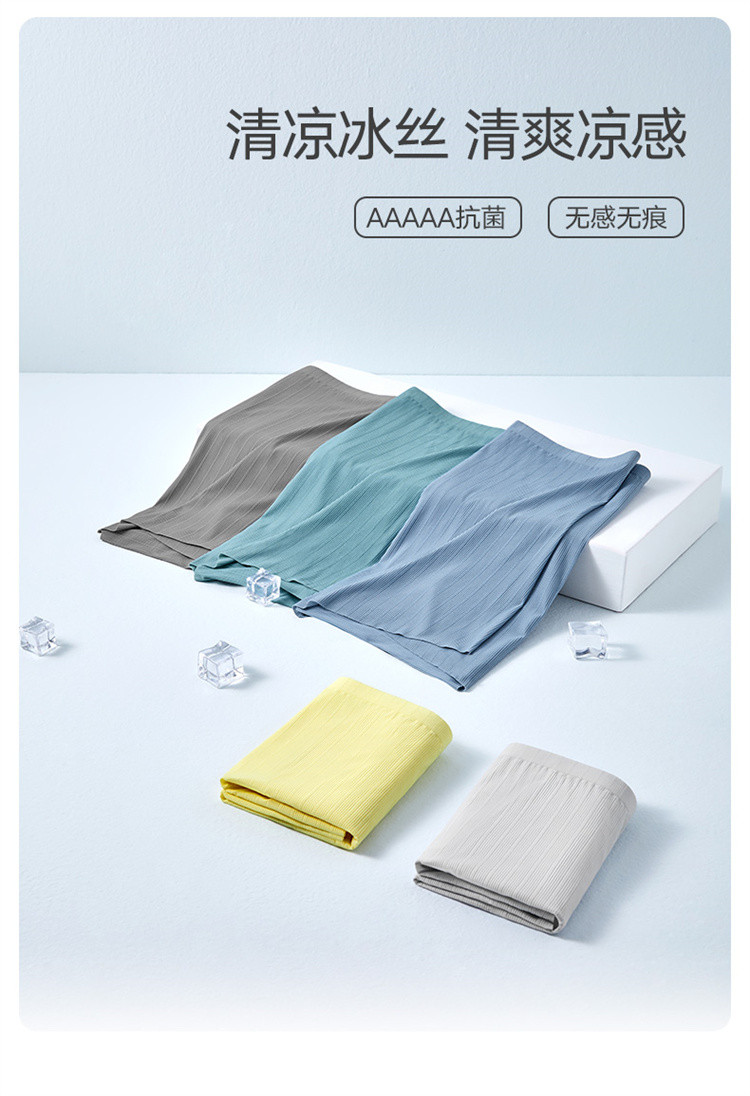 商品名称:【冰丝凉感3条装】轻薄抑菌无痕透气速干男士内裤平角四角裤短裤 515611