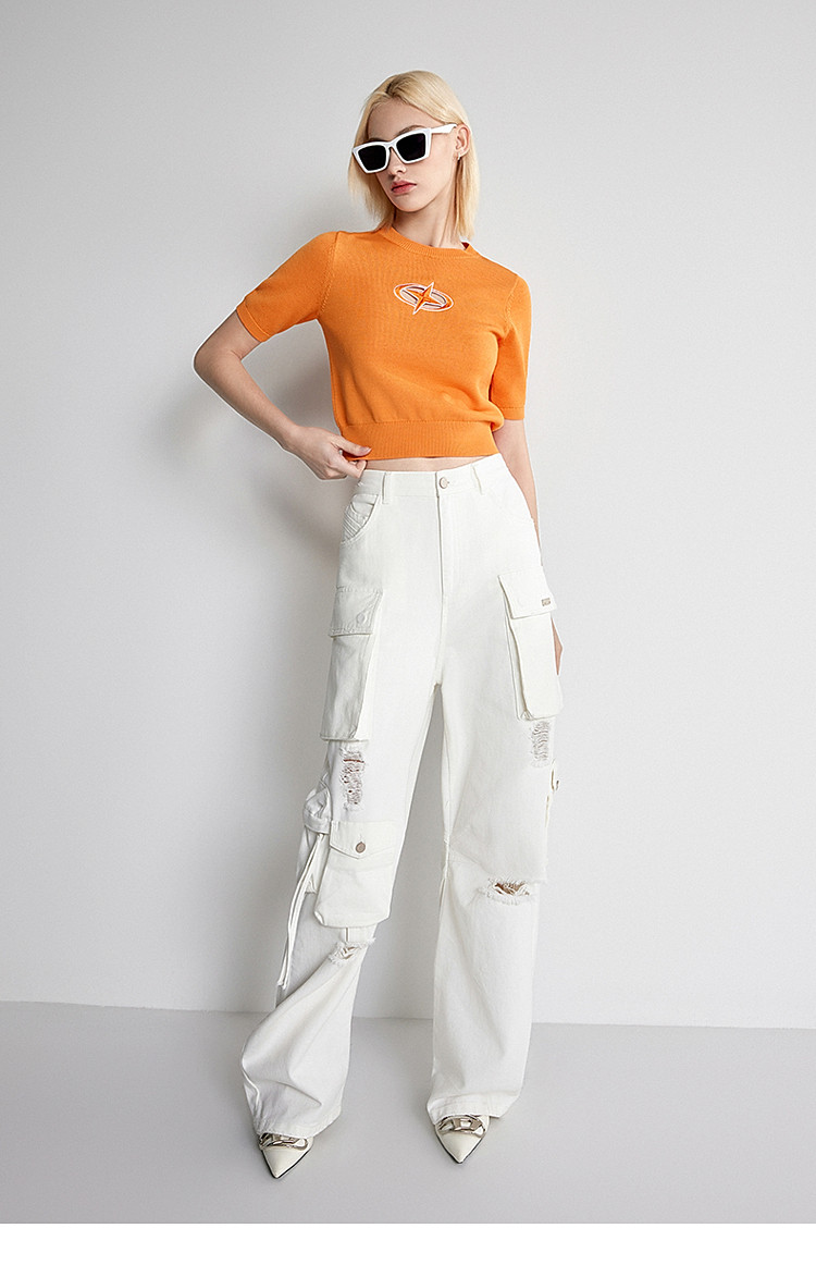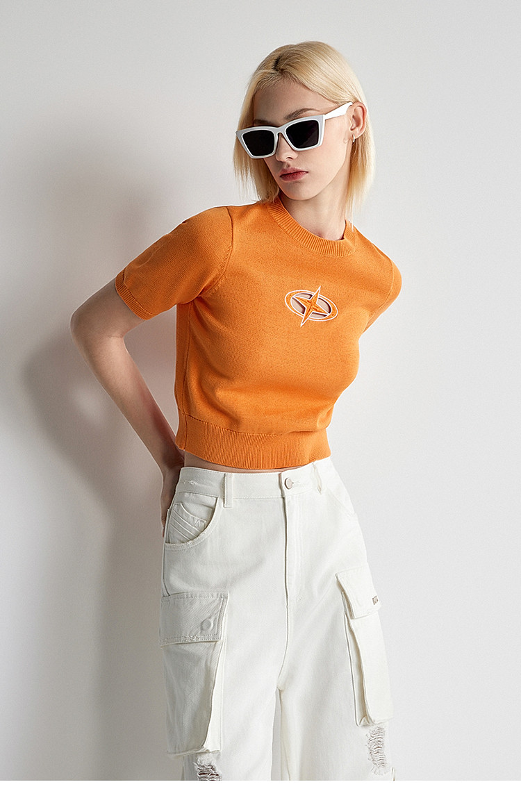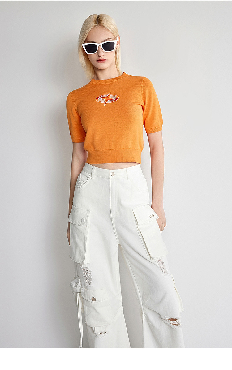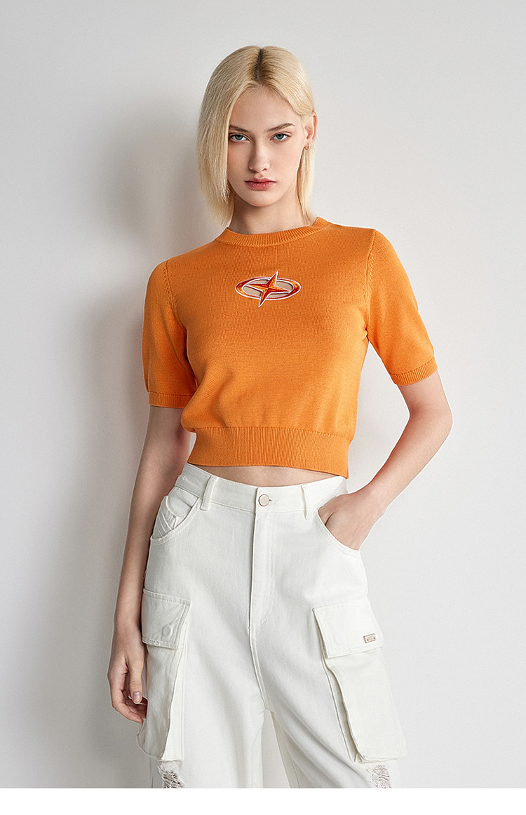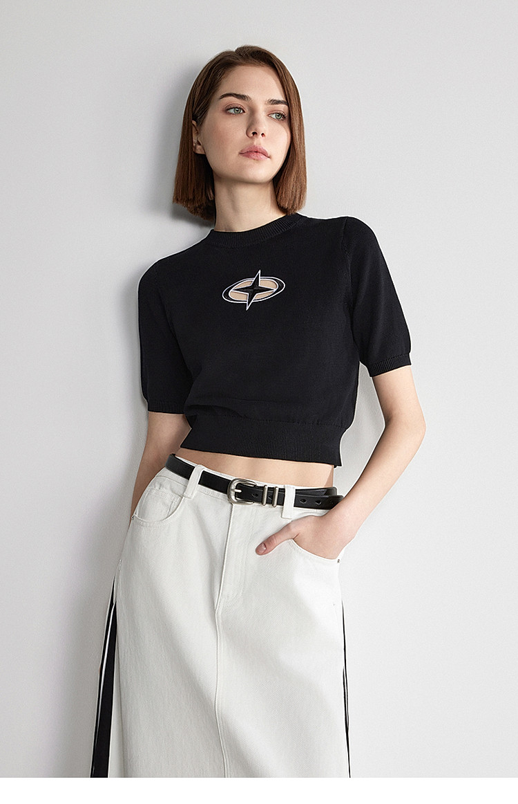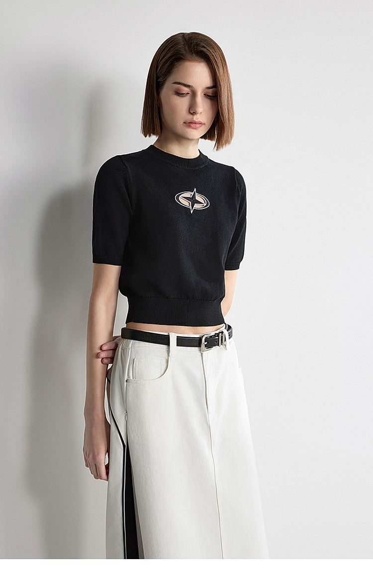 夏装 纯棉镂空短袖针织衫女刺绣别致透气 279759
