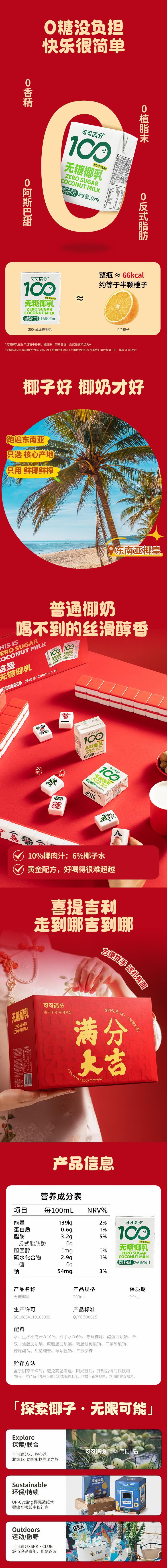 商品名称:可可满分 无糖椰乳200ml*16瓶(年货礼盒)
