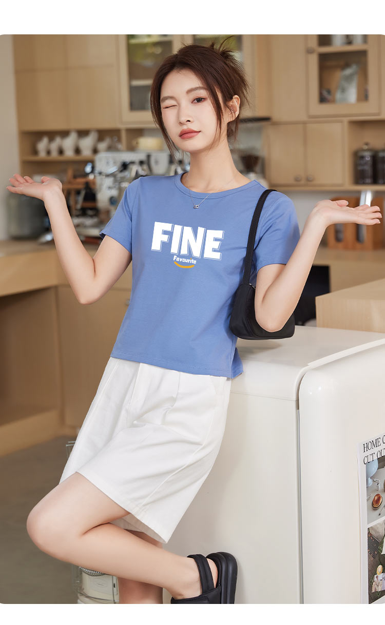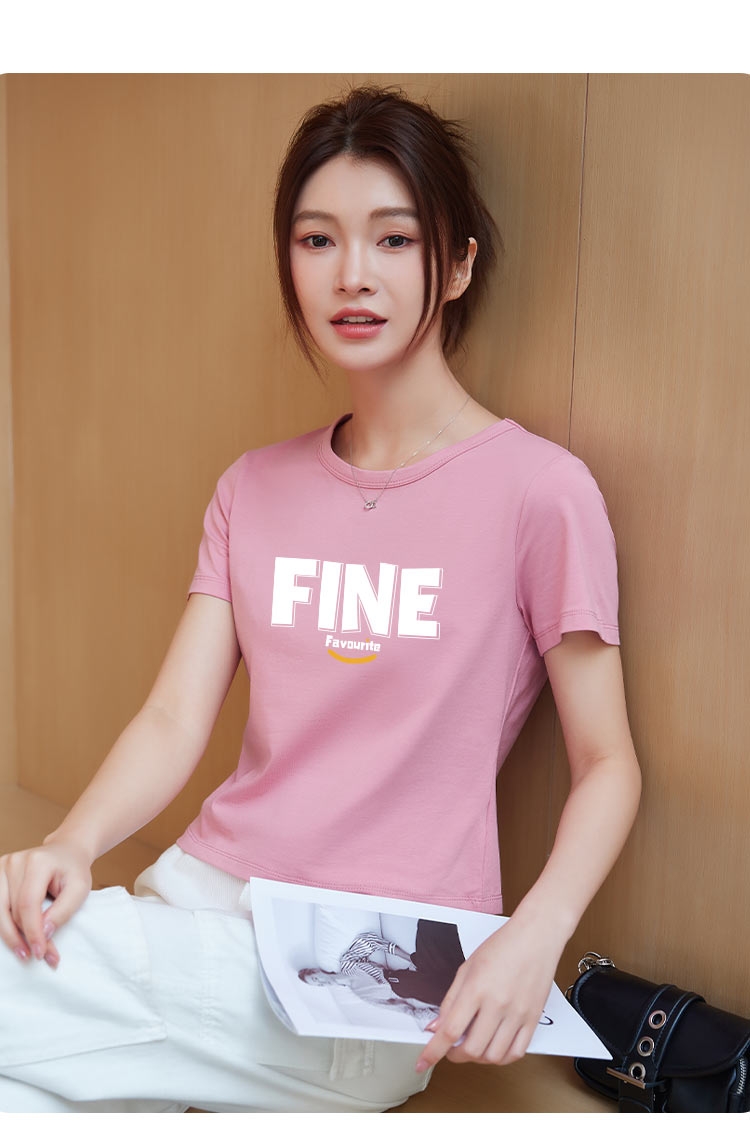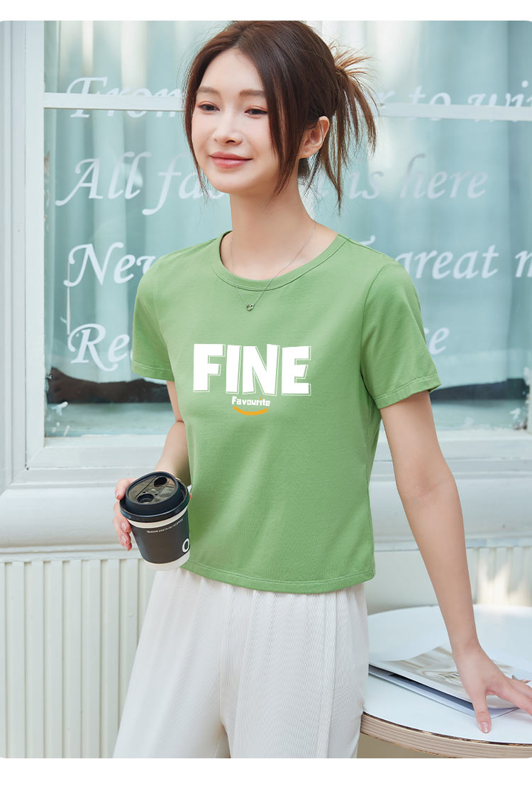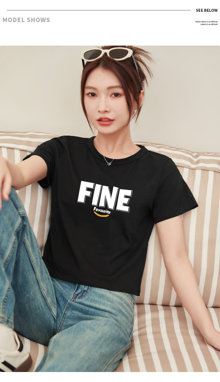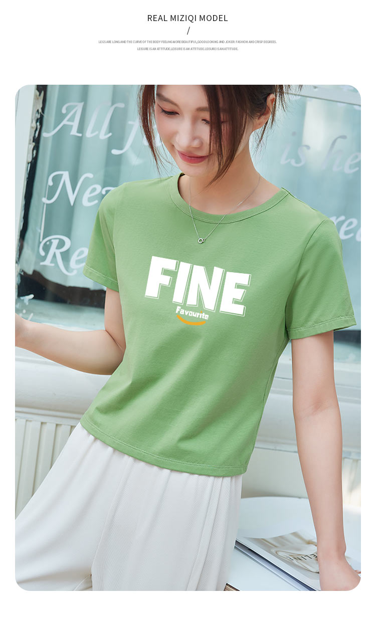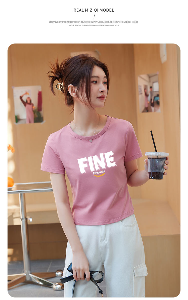 商品名称:米子旗夏季圆领字母印花基础款T恤女短款修身减龄短袖上衣 472090