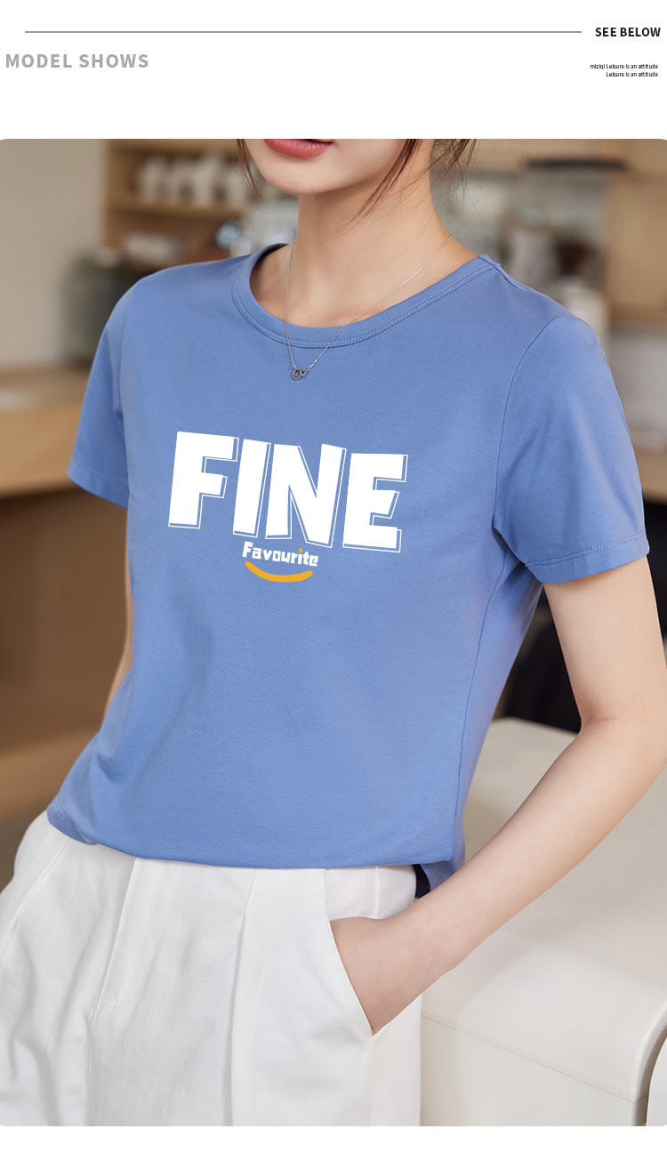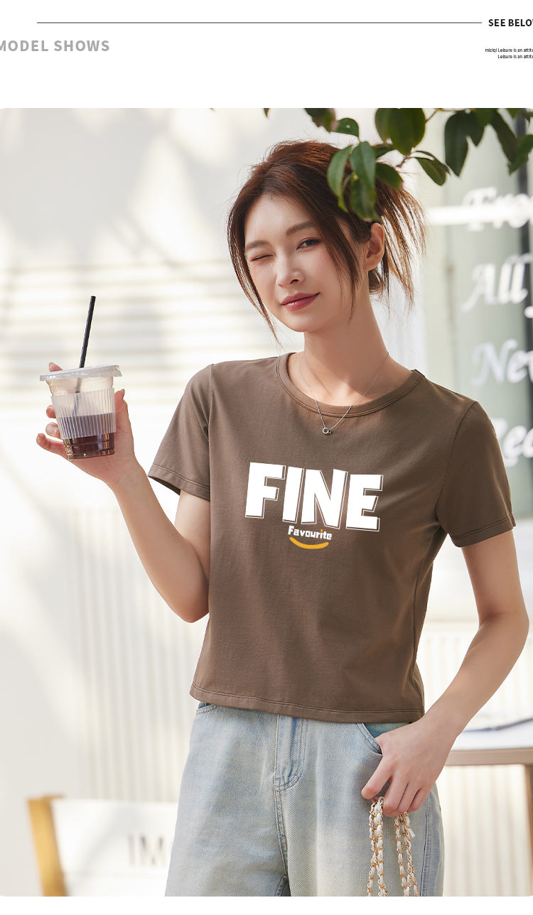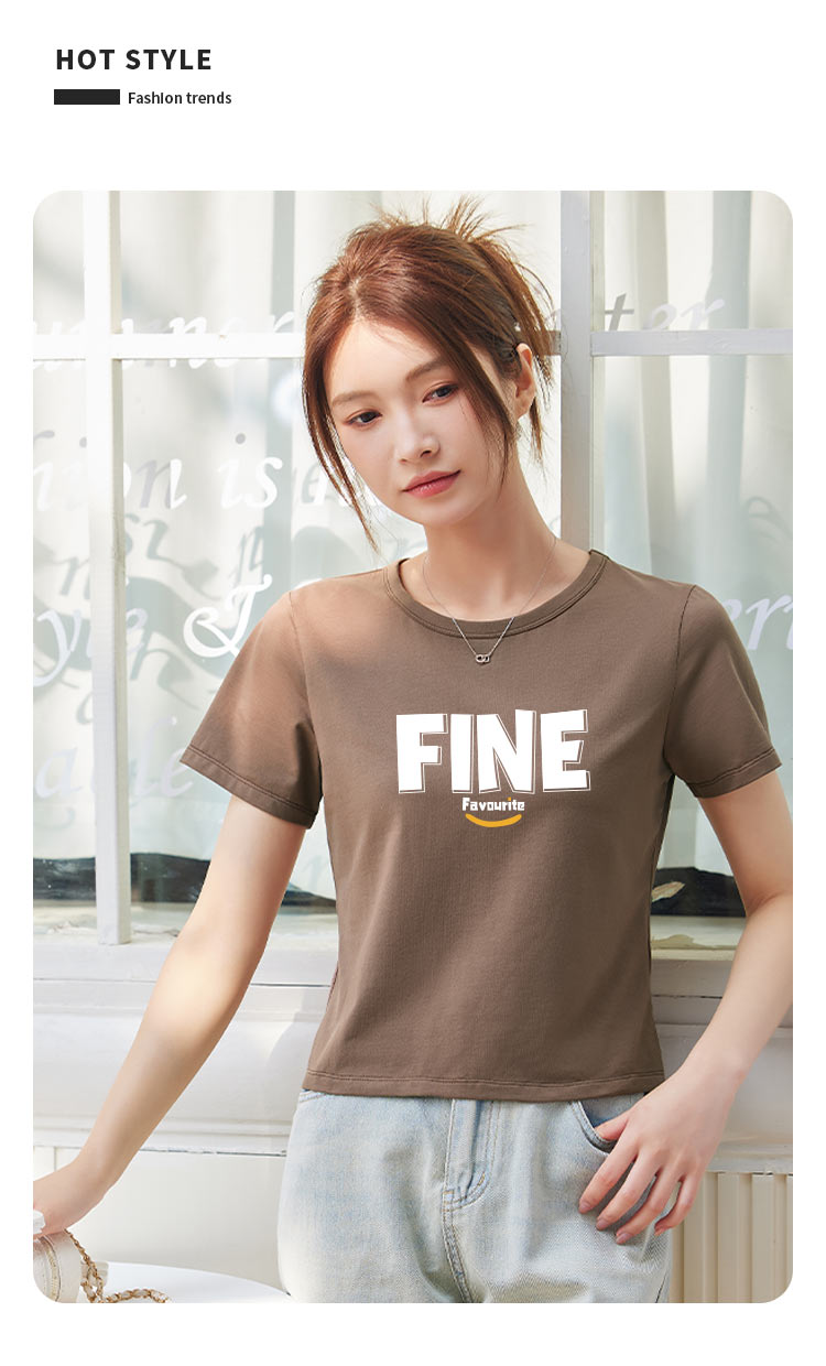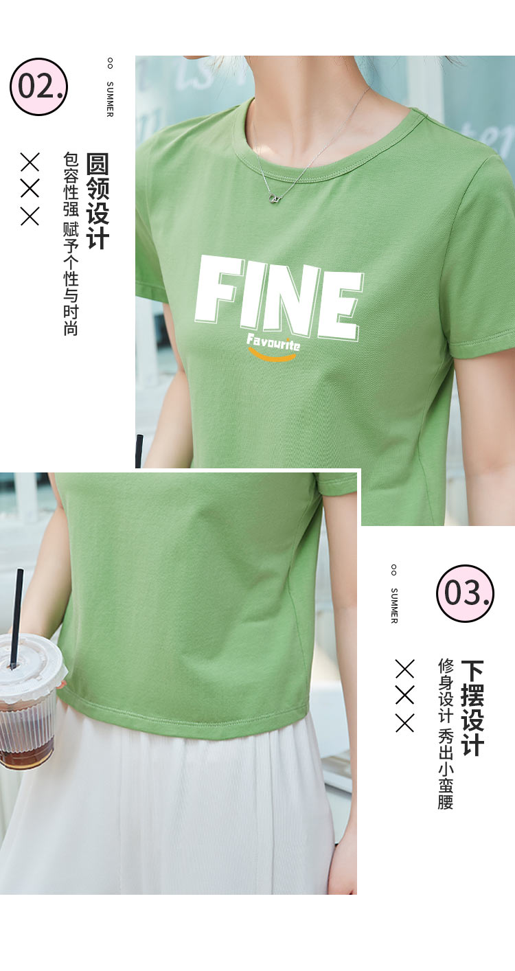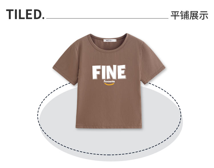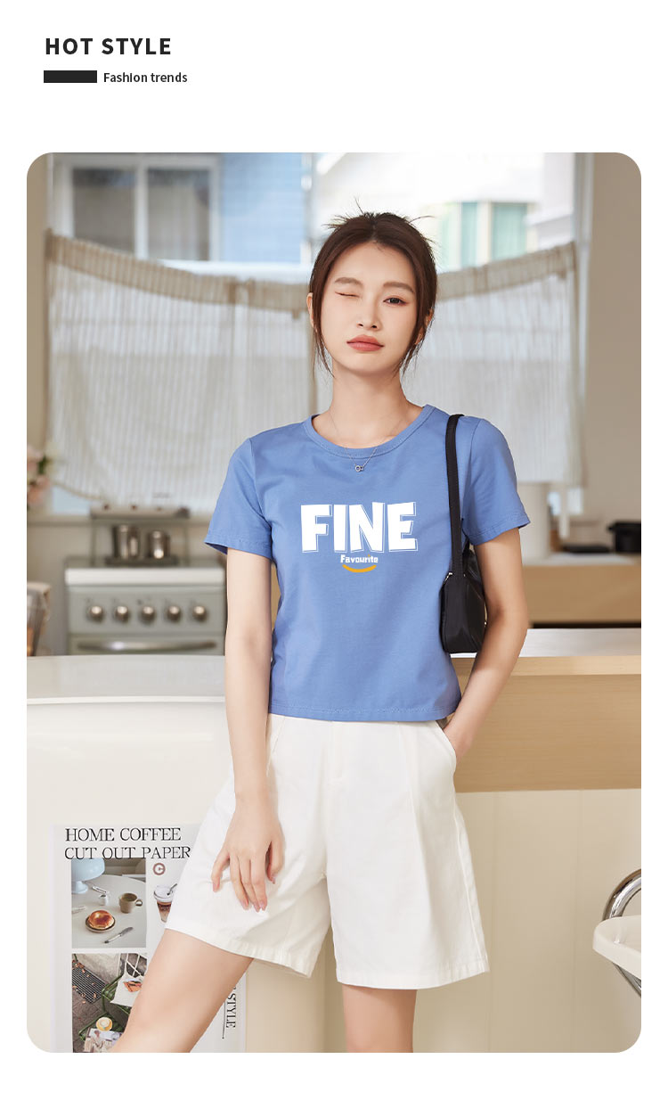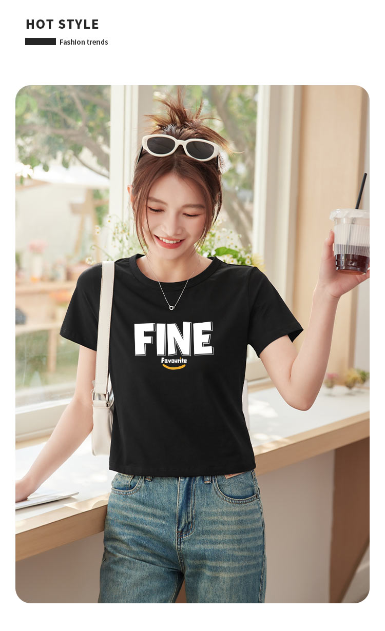 商品名称:米子旗夏季圆领字母印花基础款T恤女短款修身减龄短袖上衣 472090
