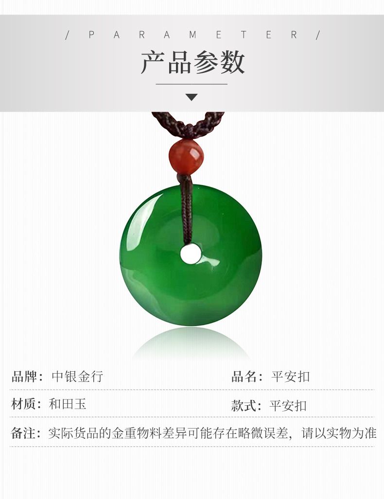 商品名称:中银金行经典绿玉髓平安扣吊坠