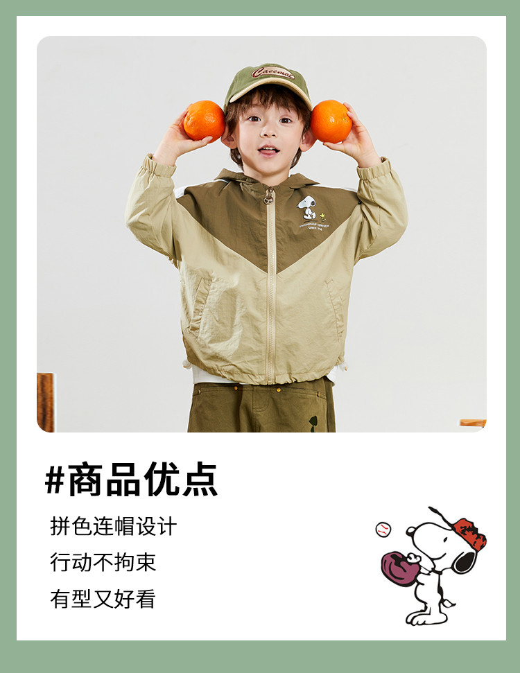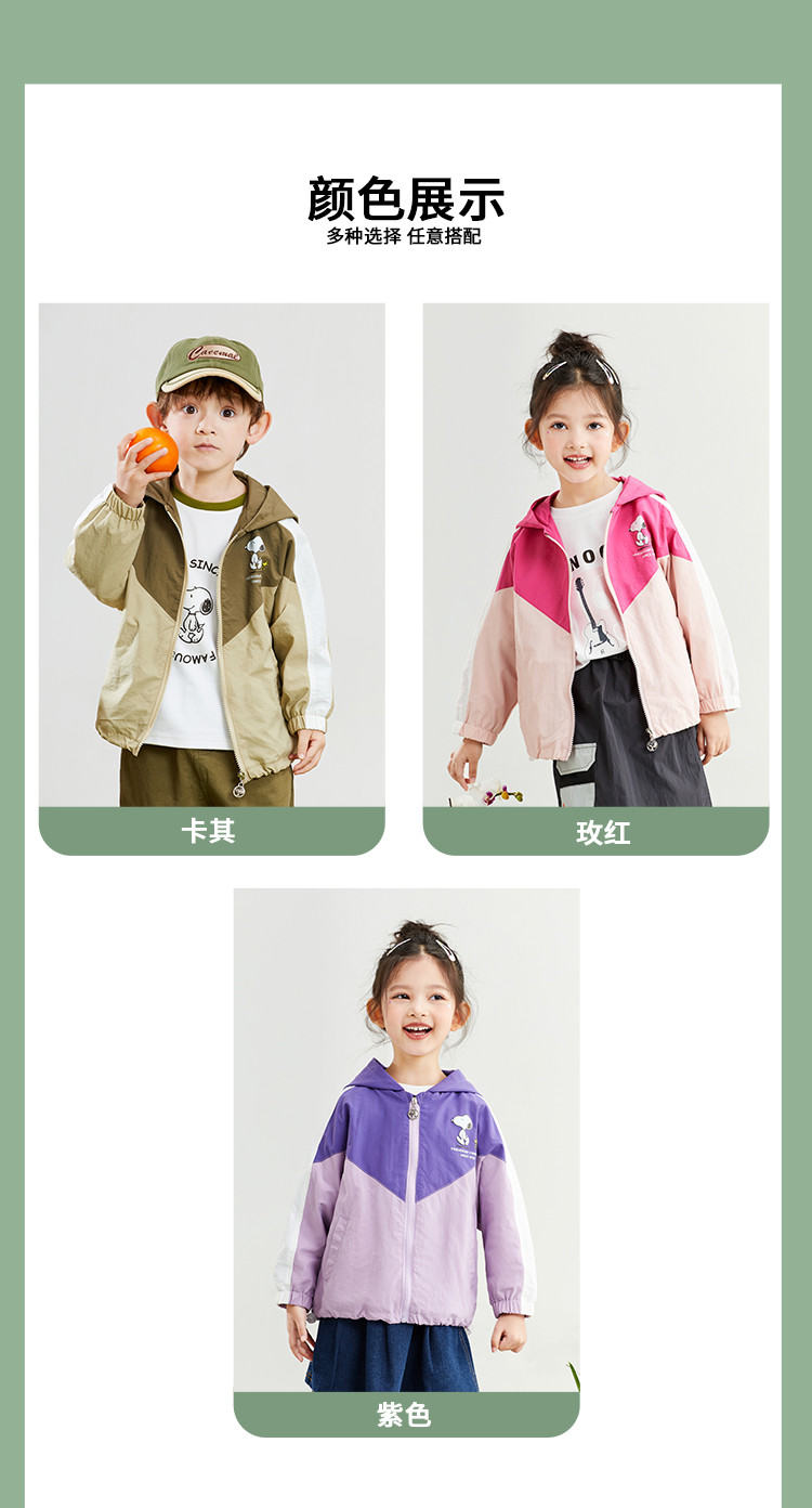 商品名称:25年春夏新款儿童外套小中大童夹克男女童休闲薄运动连帽皮肤衣 698079