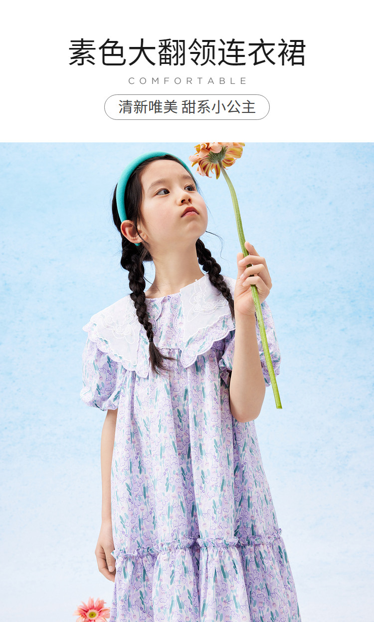 商品名称:纯棉学院风女童连衣裙儿童裙子夏季大童公主裙公主裙甜美高级感 117445