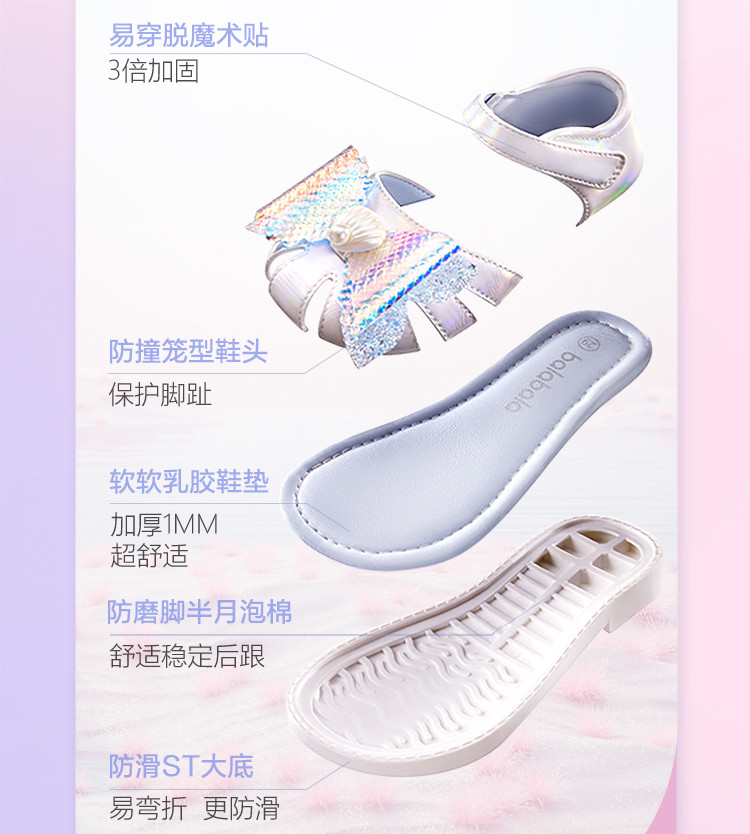 商品名称:蝴蝶结装饰公主凉鞋女童时尚甜美魔术贴儿童凉鞋夏季运动童鞋透气 378565