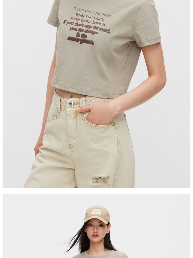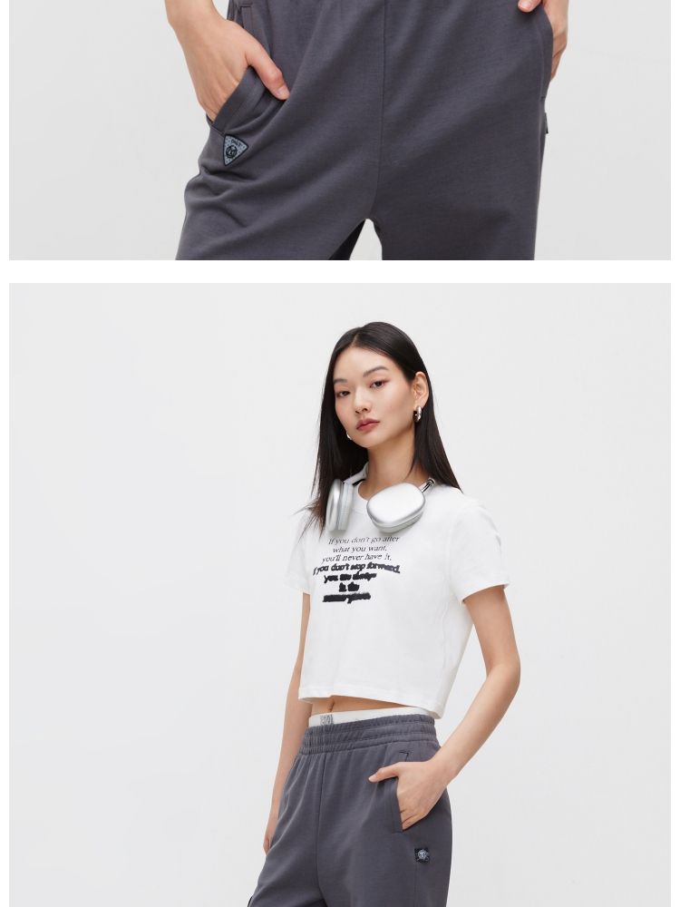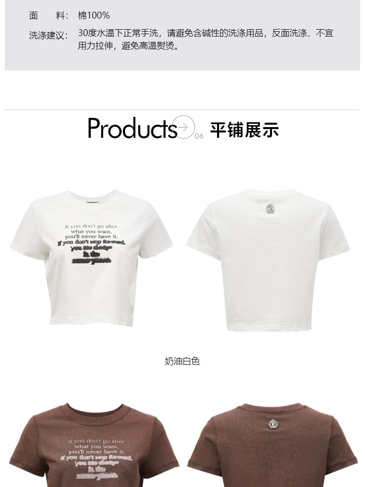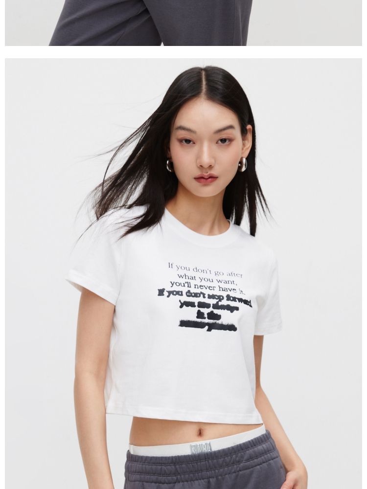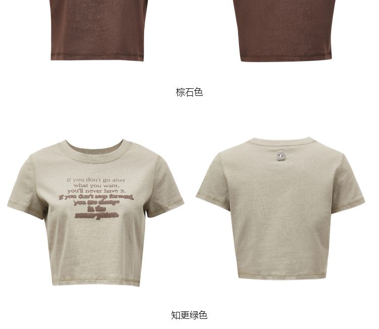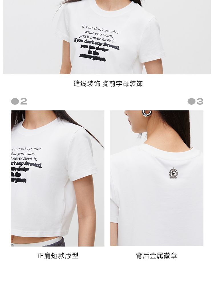 商品名称:【休闲百搭】夏季简约字母正肩圆领短款T恤女 021850