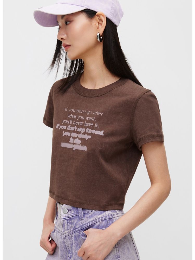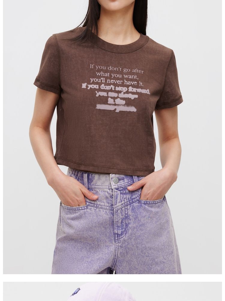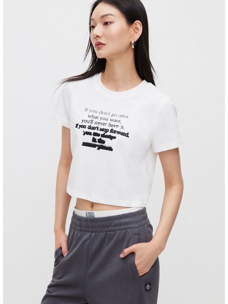 【休闲百搭】夏季简约字母正肩圆领短款T恤女 021850