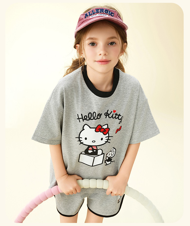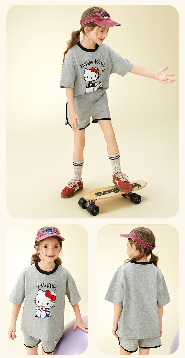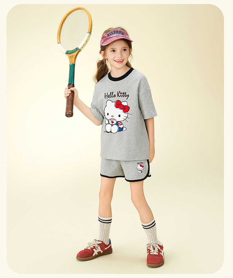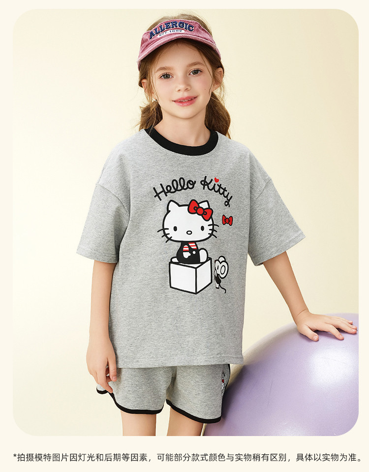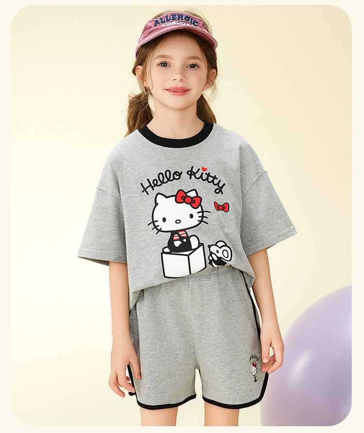 【卡通印花夏季套装】2025款女童夏日中大童装圆领上衣两件套 365406