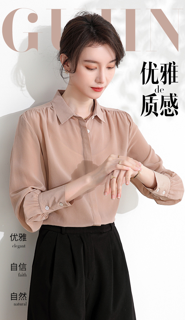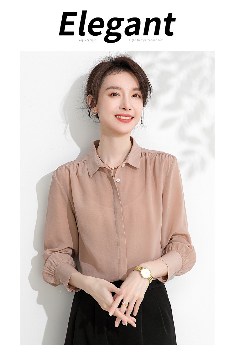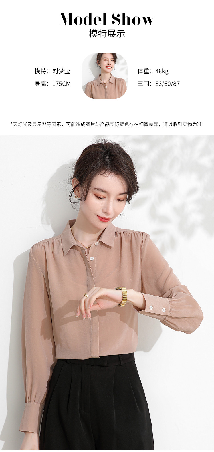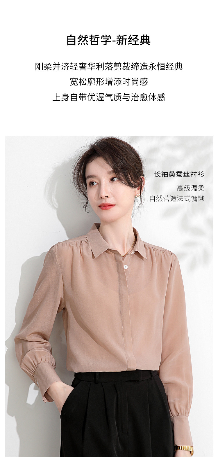 商品名称:【100%桑蚕丝 纯色百搭】商务通勤长袖真丝衬衫打底衫 227027