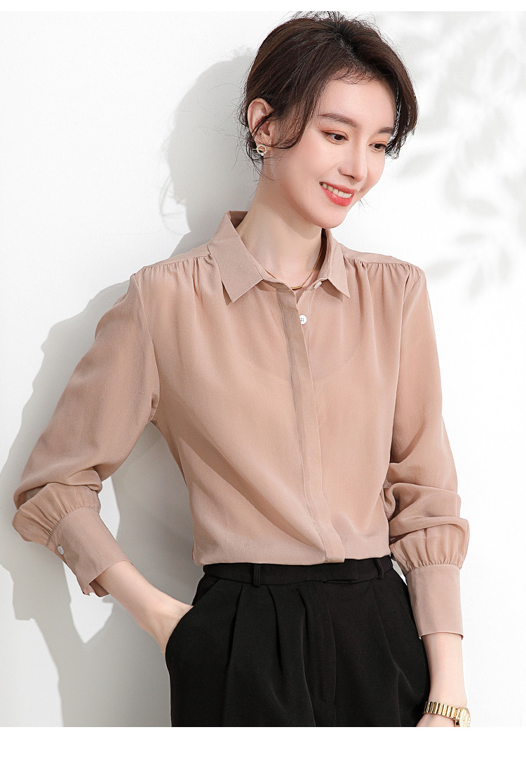 【100%桑蚕丝 纯色百搭】商务通勤长袖真丝衬衫打底衫 227027