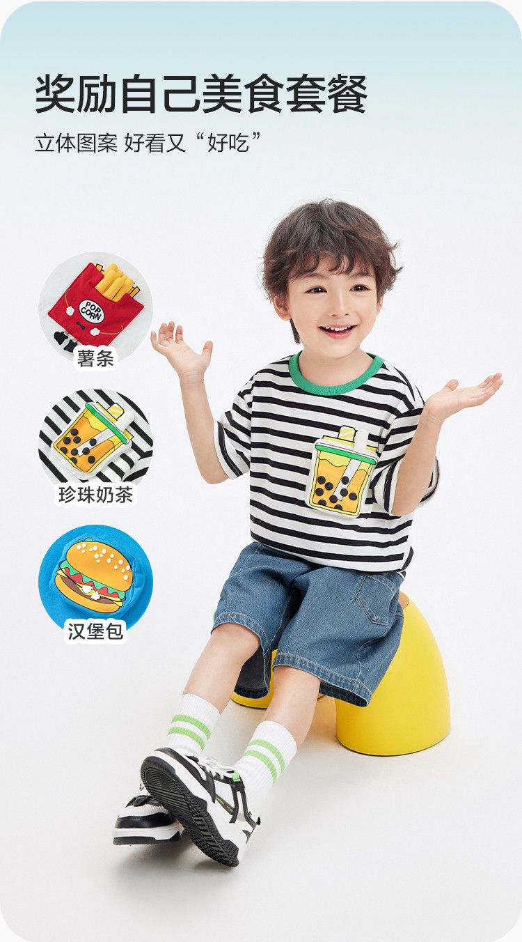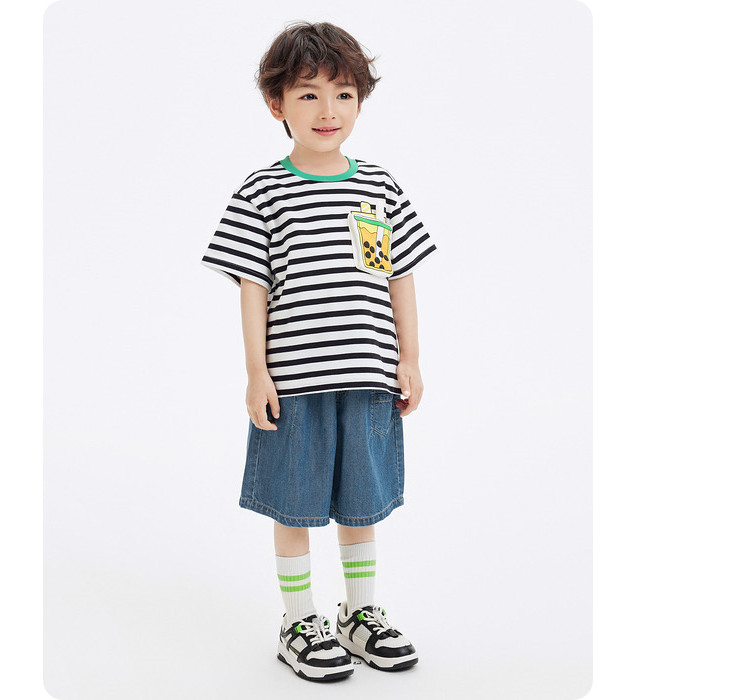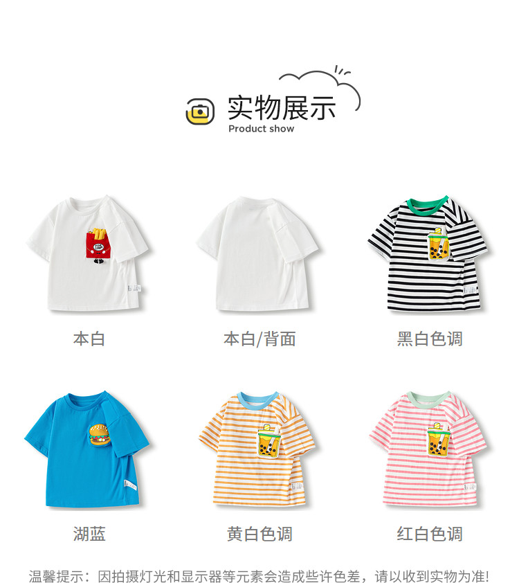 商品名称:纯棉卡通条纹儿童T恤童装男童女童短袖上衣夏季轻薄 447301