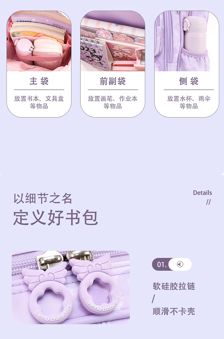 商品名称:【三丽鸥联名】书包小学生女生三二一年级女童女孩背包儿童双肩包 436737