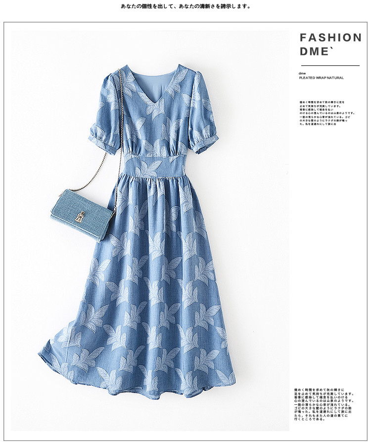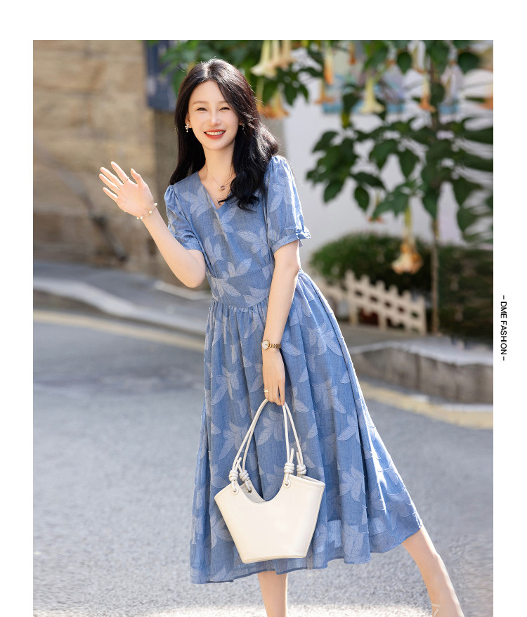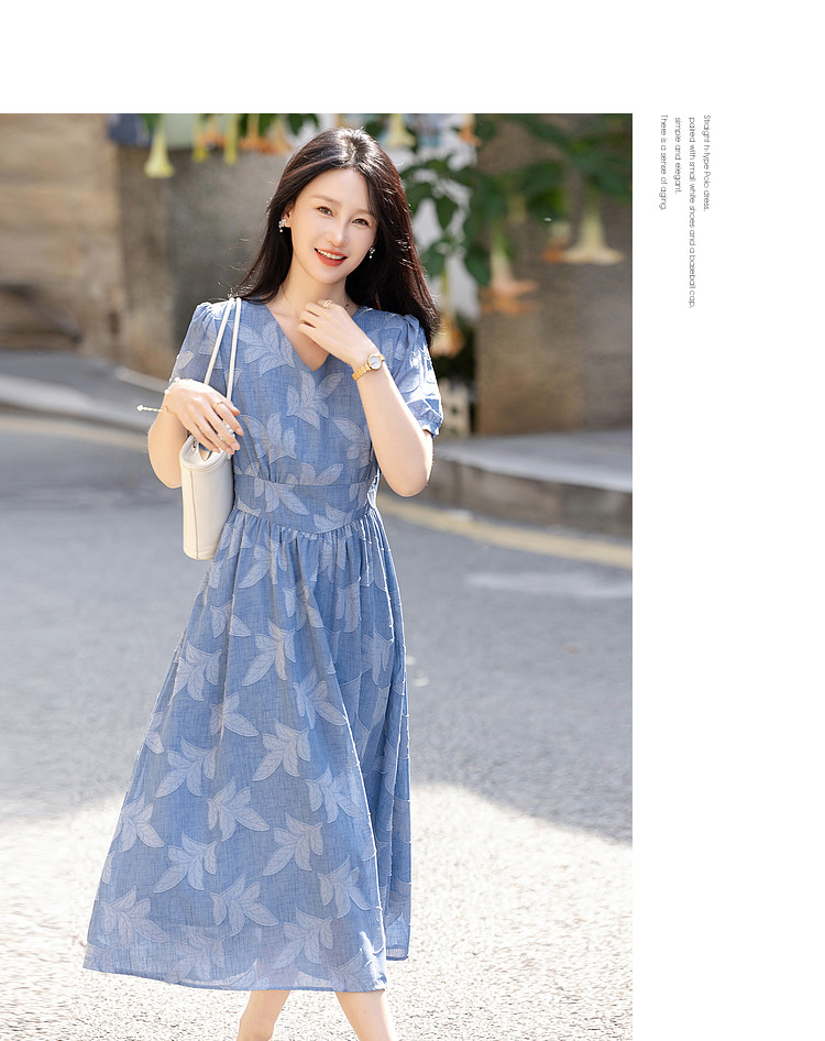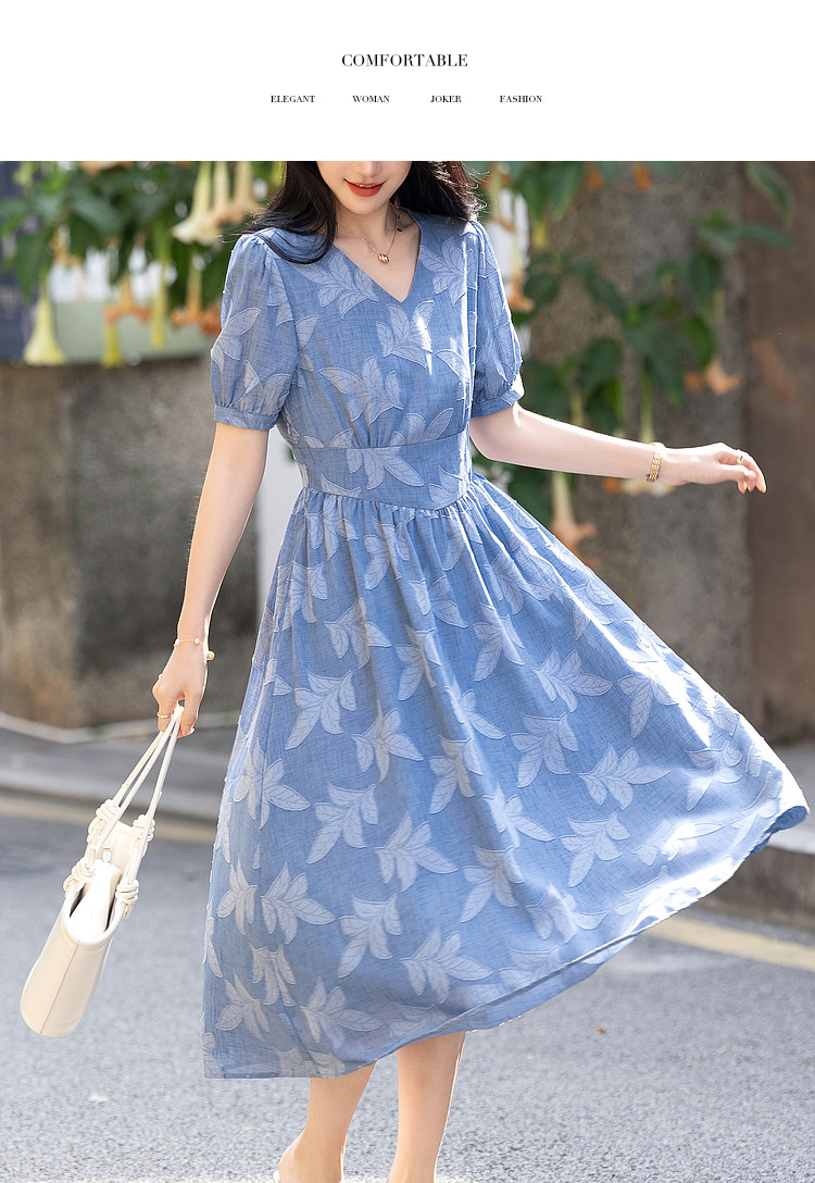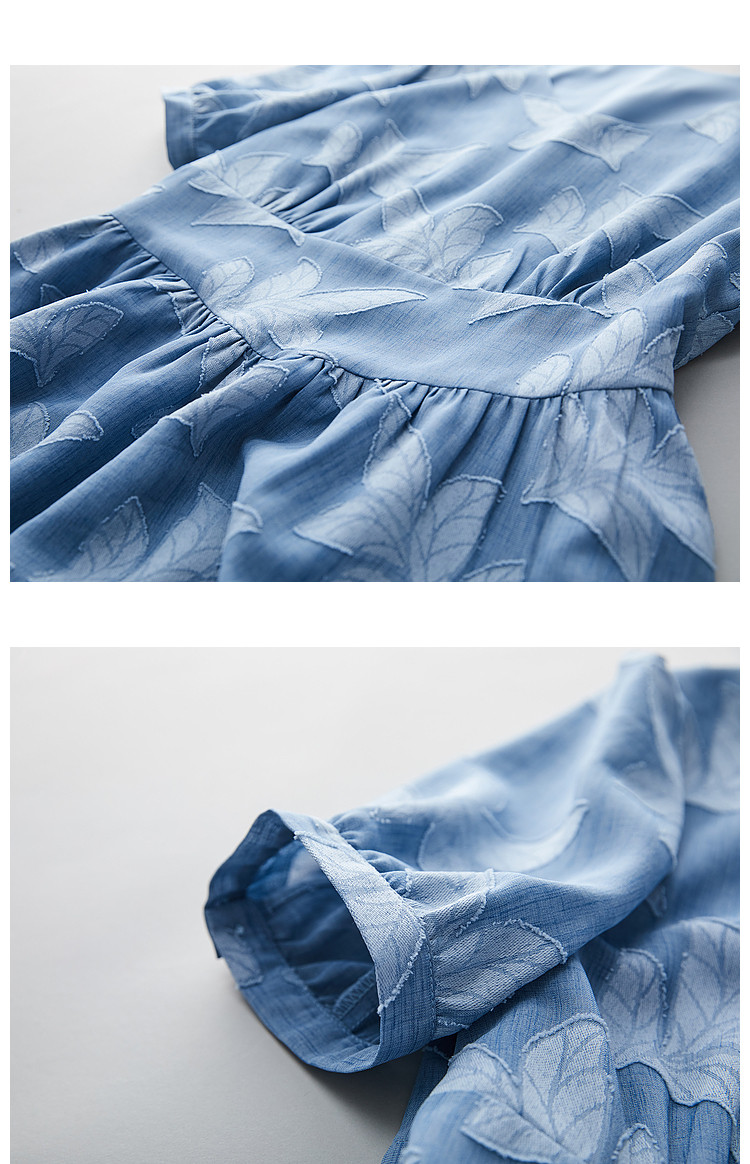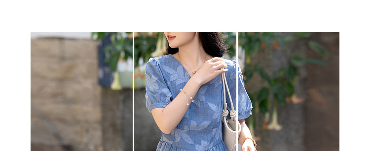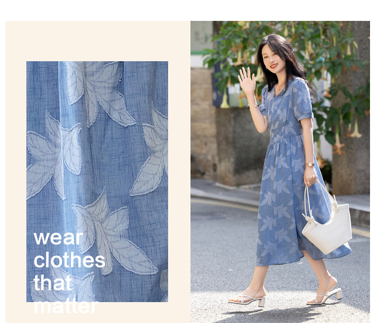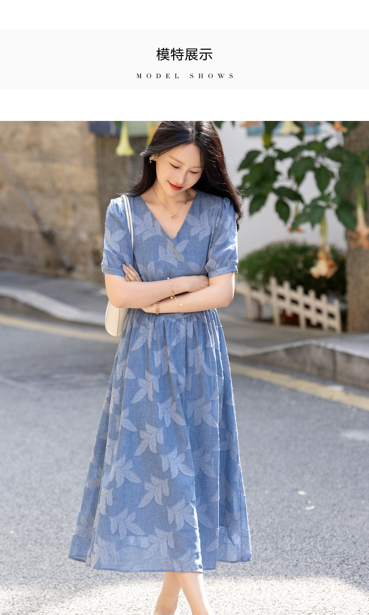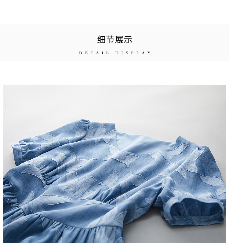 商品名称:【恰好时光系列】夏法式V领文艺剪花叶子垂顺爽滑A字女式连衣裙 007105