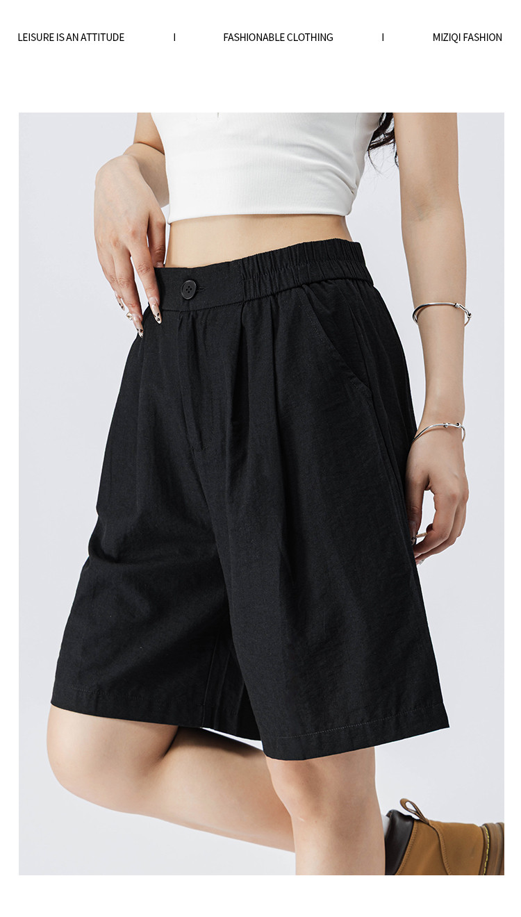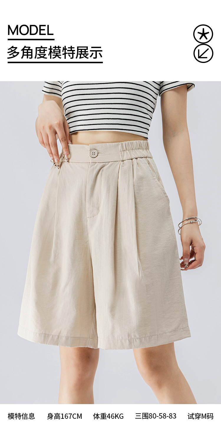 商品名称:米子旗夏季高腰薄款休闲五分裤宽松显瘦运动风休闲短裤阔腿裤 052698