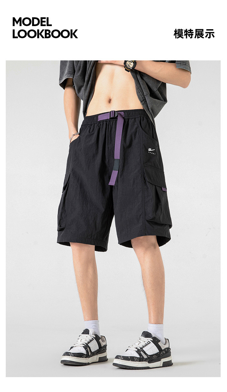 商品名称:街头多口袋工装短裤男夏季轻薄透气宽松运动裤休闲百搭情侣五分裤 452563