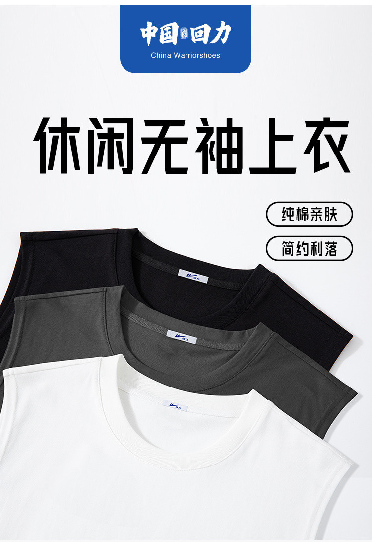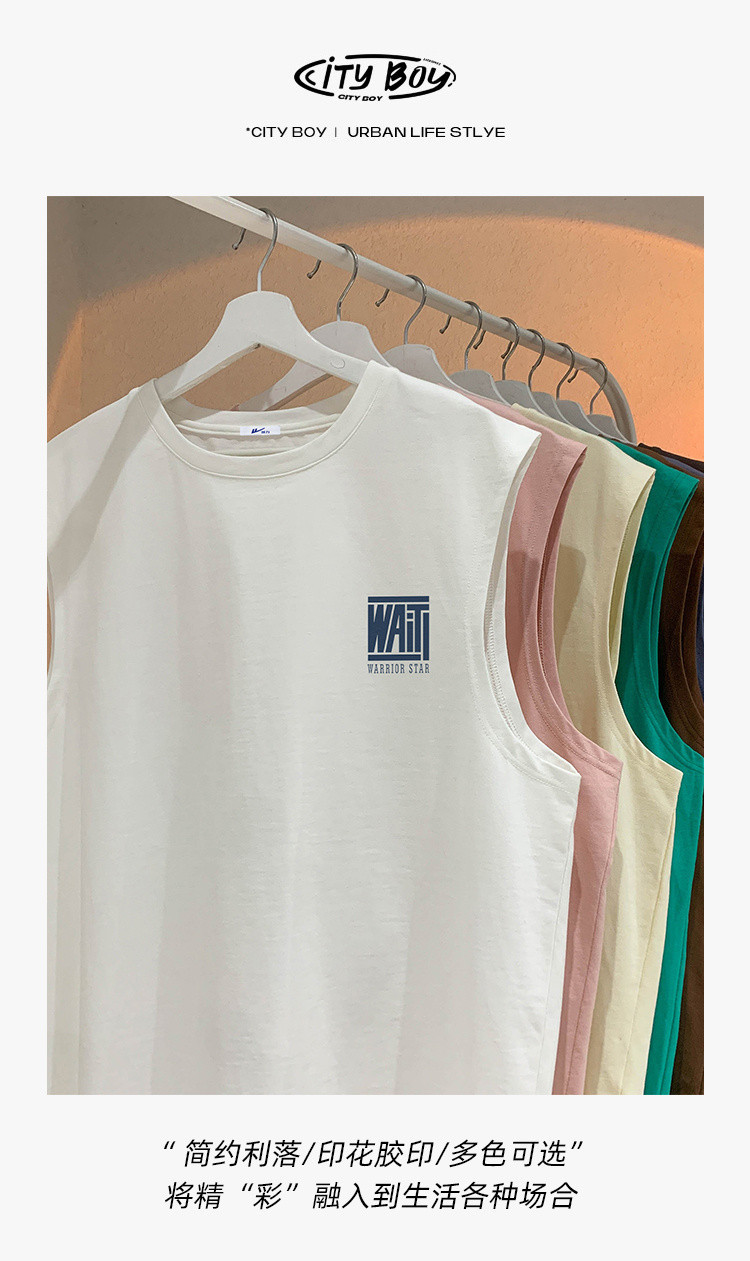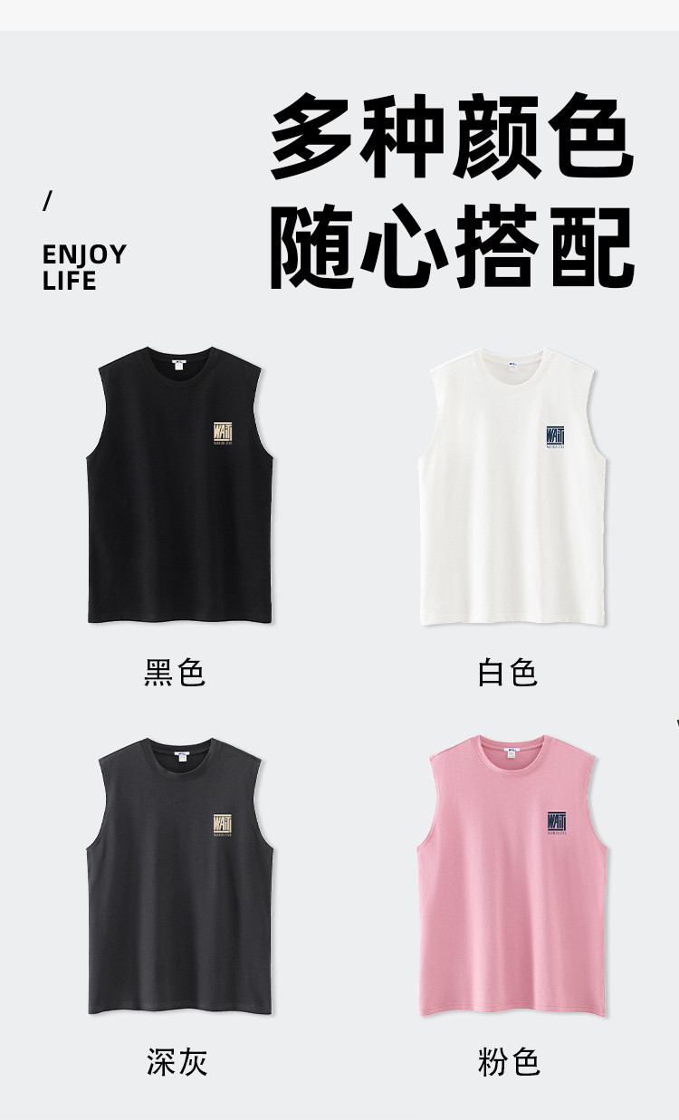 商品名称:日系简约纯棉背心男女款百搭宽松潮流夏季透气运动跑步无袖t恤衫 254227