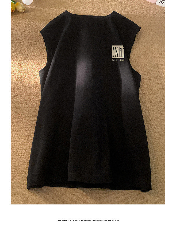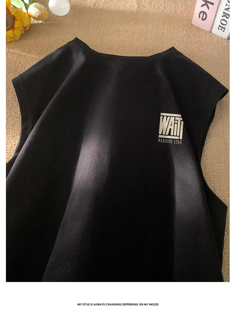 日系简约纯棉背心男女款百搭宽松潮流夏季透气运动跑步无袖t恤衫 254227