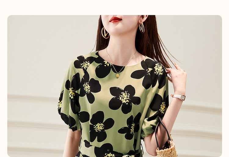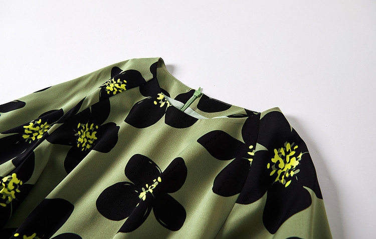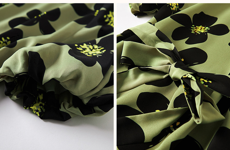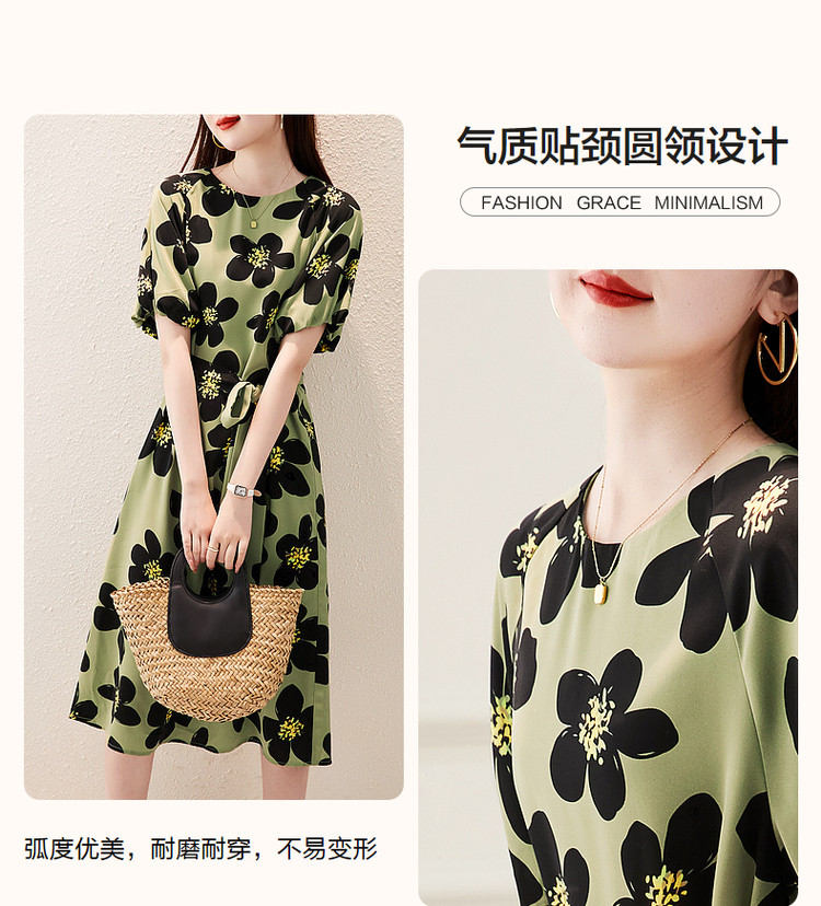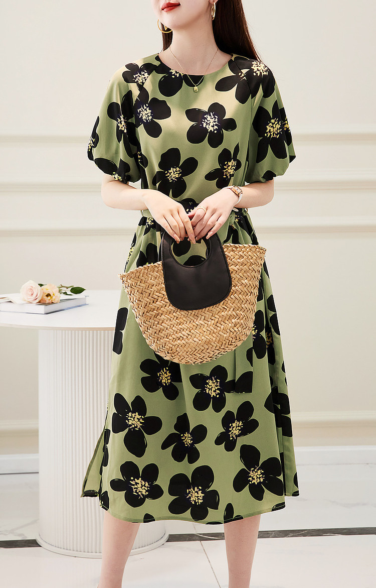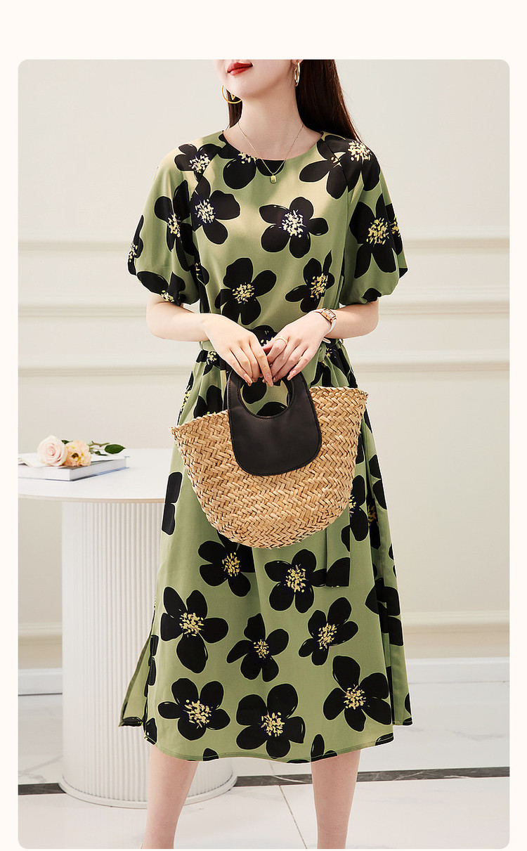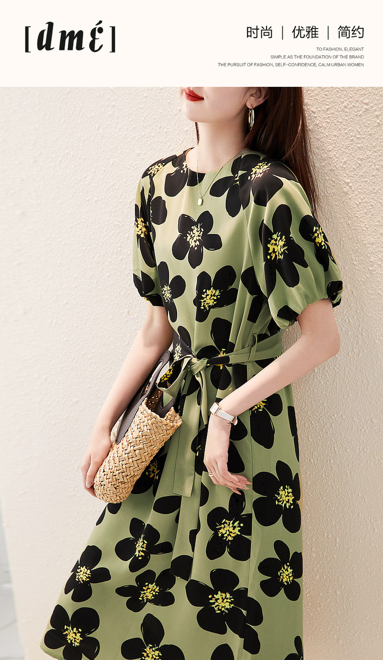 商品名称:【浪漫印花淑女裙】夏圆领灯笼袖系带连衣裙女中长款 278849