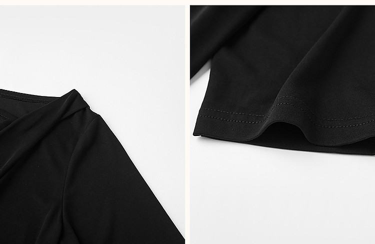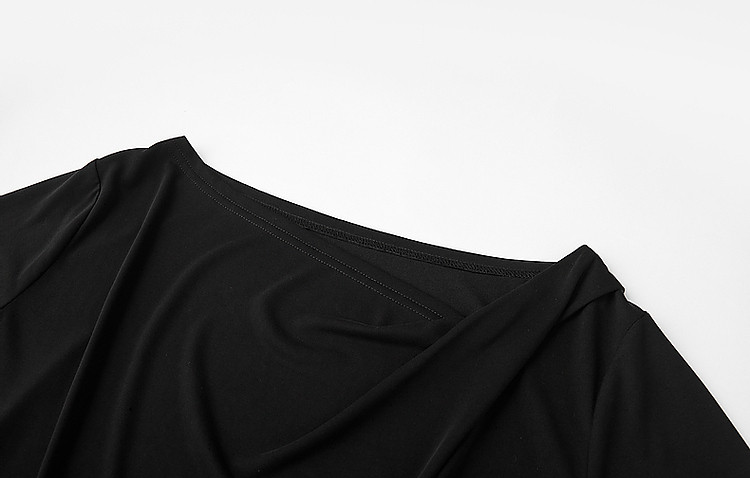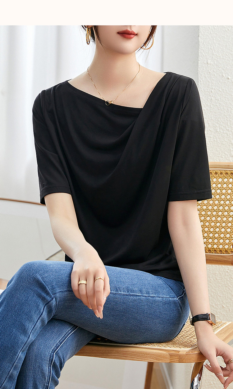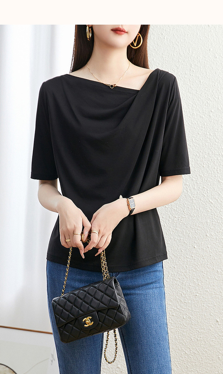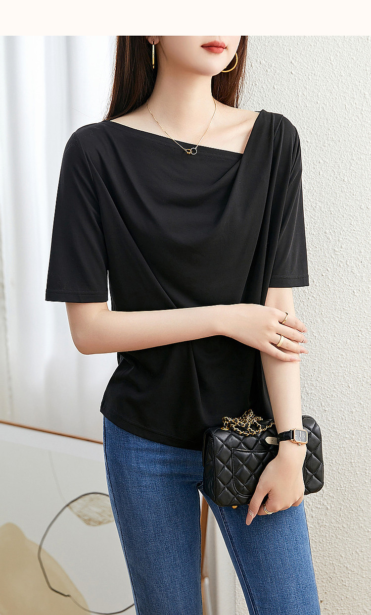 商品名称:【简约风荡领女式t恤】春秋微弹气质连肩中袖t恤女 010113