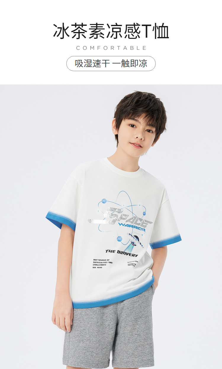 商品名称:【速干凉感抑菌环保】儿童短袖t恤男童中大童夏运动打底衫印花 371909